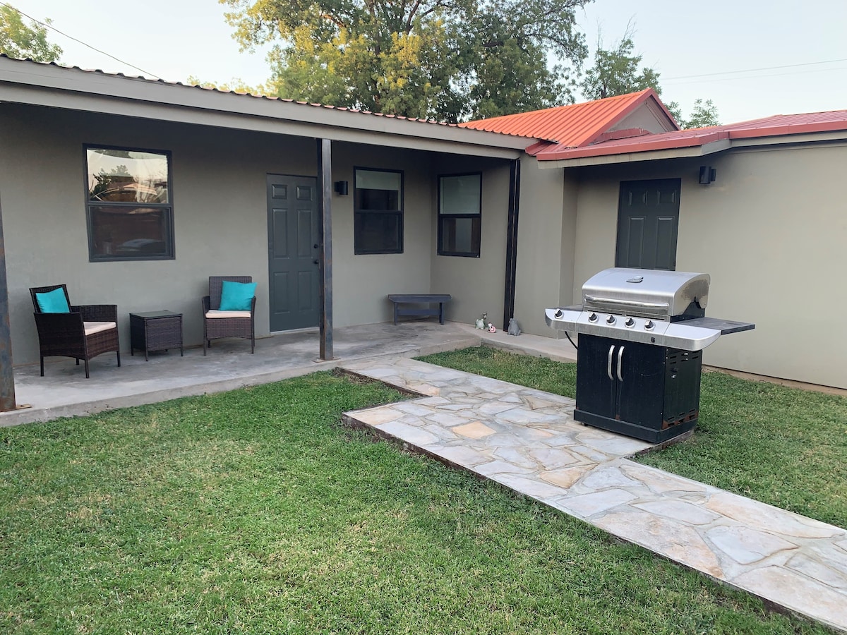 Indoor/ Outdoor shared kitchen, private courtyard with fountain, off street parking with motion sensing lighting, balcony views, outdoor games, pergola with grill. Neighborhood is residential (so please be mindful of noise levels after 10:00 p.m.), with easy access to the golf course, City Park, Kokernot Field (Home of the O6 Cowboys!), Sul Ross State University and scenic Loop Road.