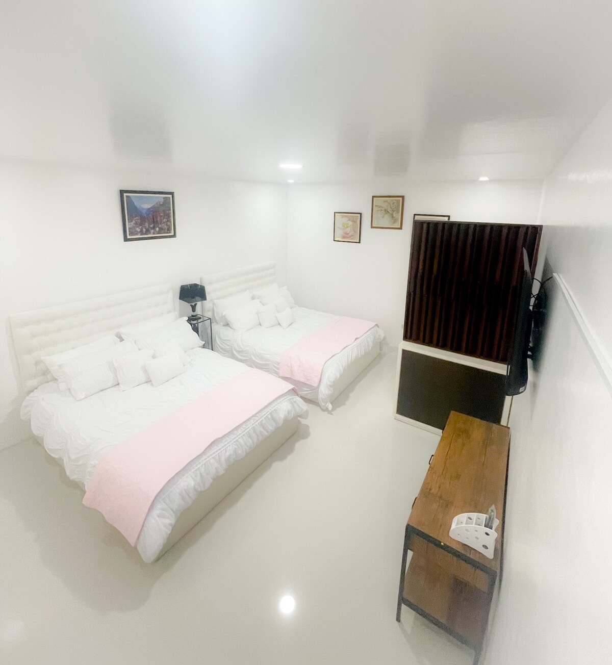 The room has 2 King Beds, a Mini fridge and a water heater. Breakfast is available for an additional P250/ head.