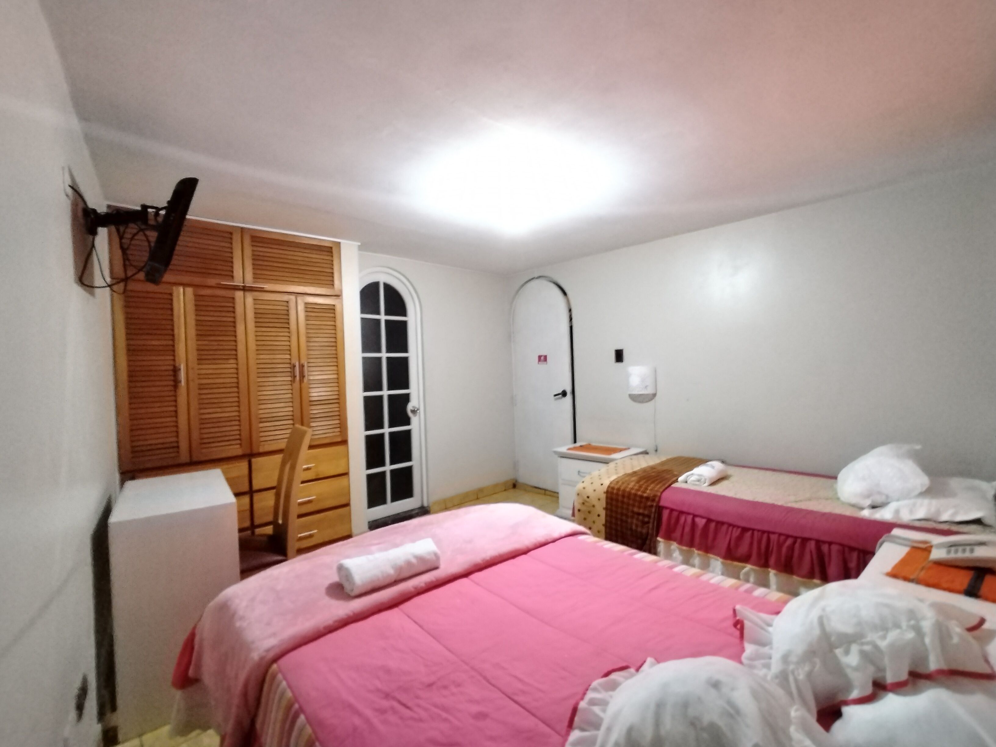 Room for three people with three single beds, private bathroom, hot water, cable TV, and bedding. Housekeeping service. We are located two blocks from the main square and one block from the central market