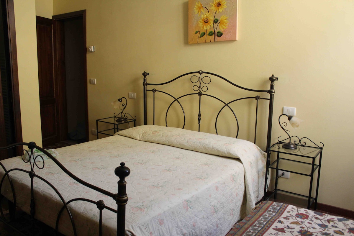 The room is part of our home but enjoys a lot of privacy having a private entrance and a clear separation from our rooms. Guests have a bright room with TV, air conditioning, private entrance and bathroom and a small annex with air conditioning, where you can stay with a fridge, microwave, kettle and everything you need for breakfast; they will also have the opportunity to relax in the garden equipped with sofas and armchairs enjoying the magnificent view of the Val di Chiana. Left the main road and path about 300 meters of dirt road, nature and animal lovers will feel comfortable sharing the outdoor space with our four cats and our two dogs, but they will not interfere with the tranquility of the stay.