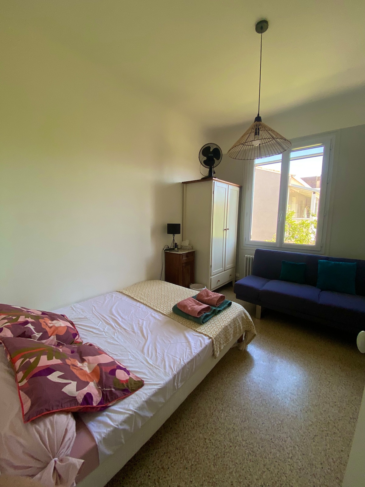 This is an old shipowner's house a few steps from the Rhône, on the other side of the bridge leading to the historic centre of Arles. We are a 5-minute walk from the centre of the old town and also very close to pleasant walks along the quays. Each of the rooms has air-conditioning and individual showers/WCs. Our wisteria and bignone trees, both over a hundred years old, cover the patio in luminous green. You have access to the dining room, patio with tables and chairs, half bathroom, and living room on the 1st floor, with a couch and armchairs, fireplace and piano. Check out our reviews on other platforms!