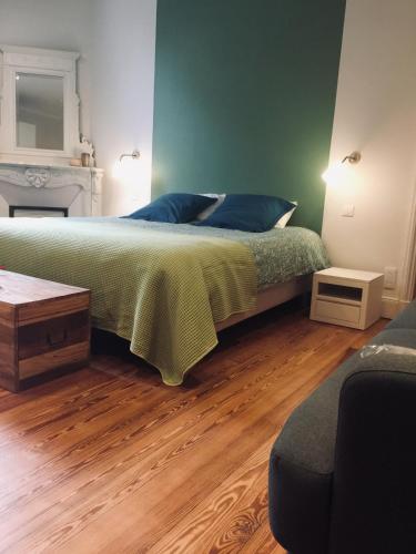 In the city center, in the literary and artistic heart of Arles, une maison de geste : Le ciel dans l'escalier. Stone space in the medieval part of the old Priory of Malta. Three levels, spiral staircase, loggia, ribbed vaults, patio, piano, interior courtyard... Nestled on the 3rd and top floor, the blue room has a bathroom and a king size bed that can be separated in two. As for the upper room (second floor), you enter through a private passageway. Welcome !