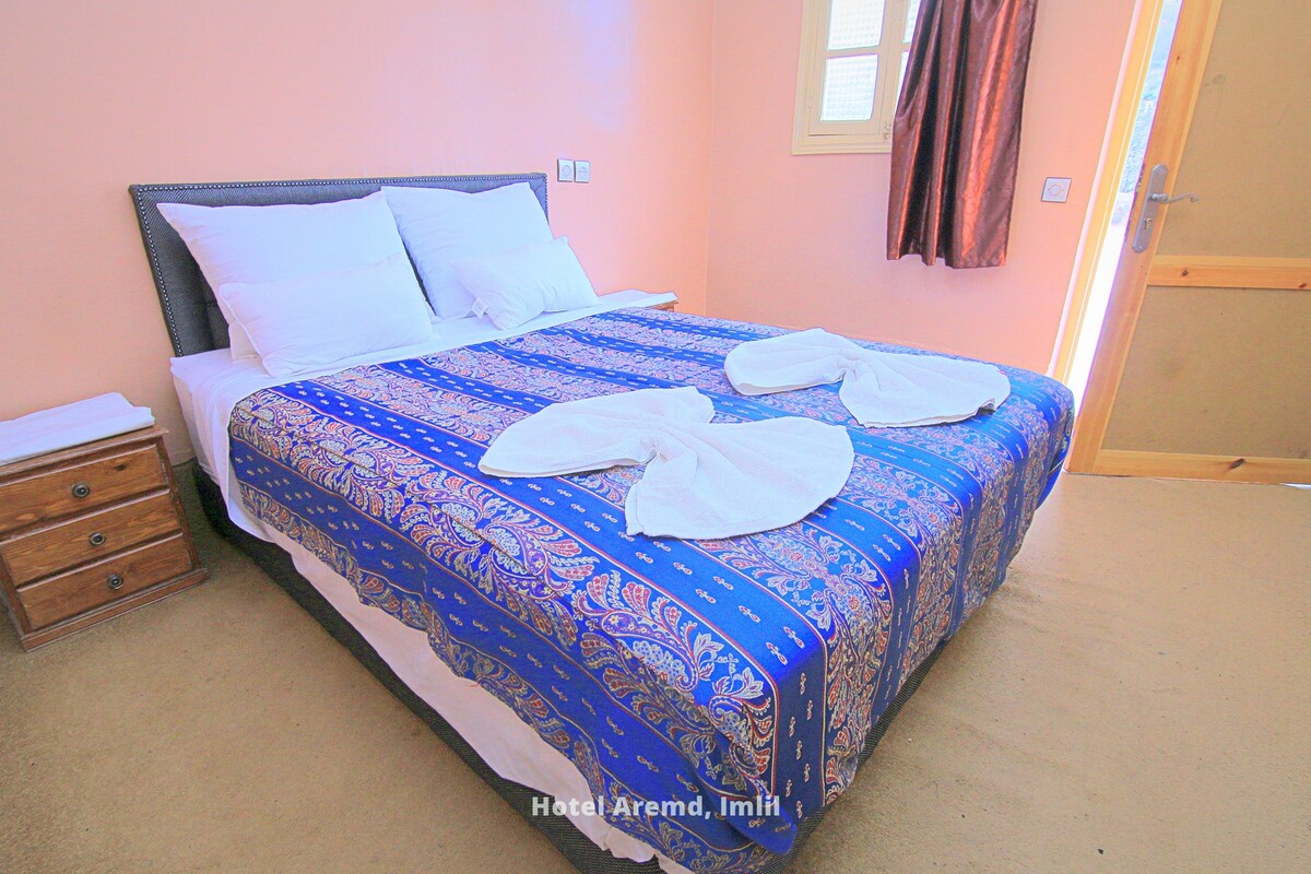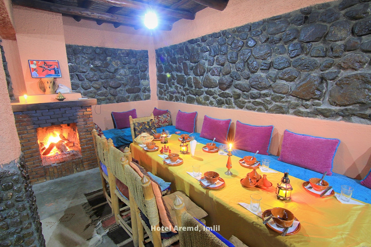 We offer accommodation for trekkers and hikers. Sleep at the highest hotel in Aremd. As a clean hotel located in the High Atlas with wonderful views over the valleys we may arrange everyday activities , Toubkal trek and day trips in the area.