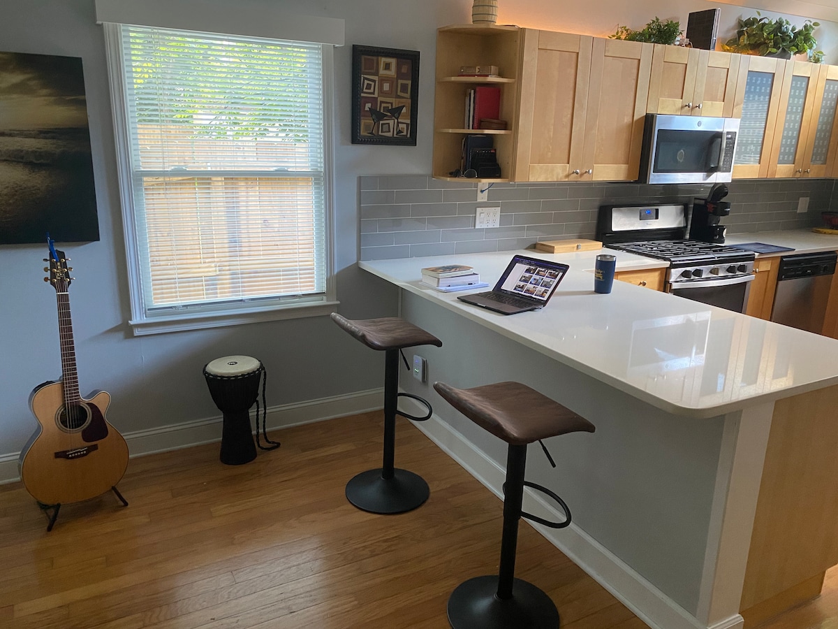 Built in 2019, The Roost features new construction and furnishings, including a queen size bed, dining table, kitchenette, full bathroom and vaulted ceilings that open the space up to tons of natural light. The Roost comes fully stocked with everything you need, including: high speed internet, smart tv, hairdryer, iron, games, dishwasher, coffee/tea, etc. The whole upstairs studio is yours to enjoy. We use a keypad smart lock, so you never have to worry about keys. The Roost is an inclusive dwelling in a progressive neighborhood.