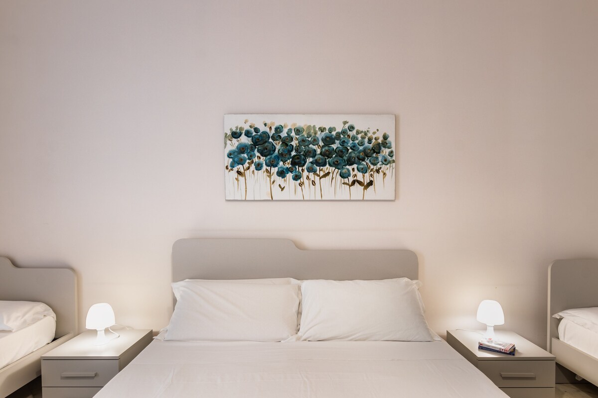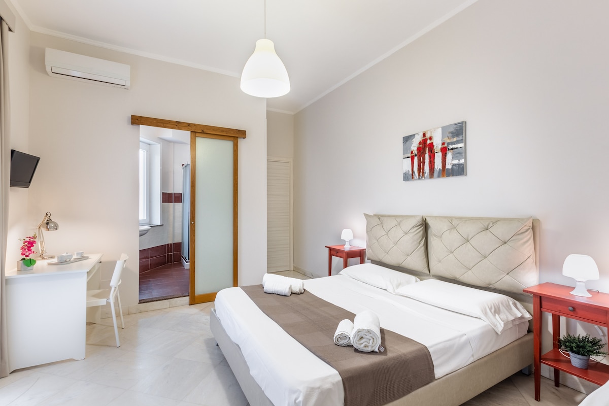 Melody Room is an elegant and bright double bedroom located in the center of Avola. The room is equipped with a balcony, flat-screen TV, private fridge, desk, sofa, heating and air conditioning; it also has Wi-Fi, a private bathroom complete with hairdryer, toiletries and towel service.
