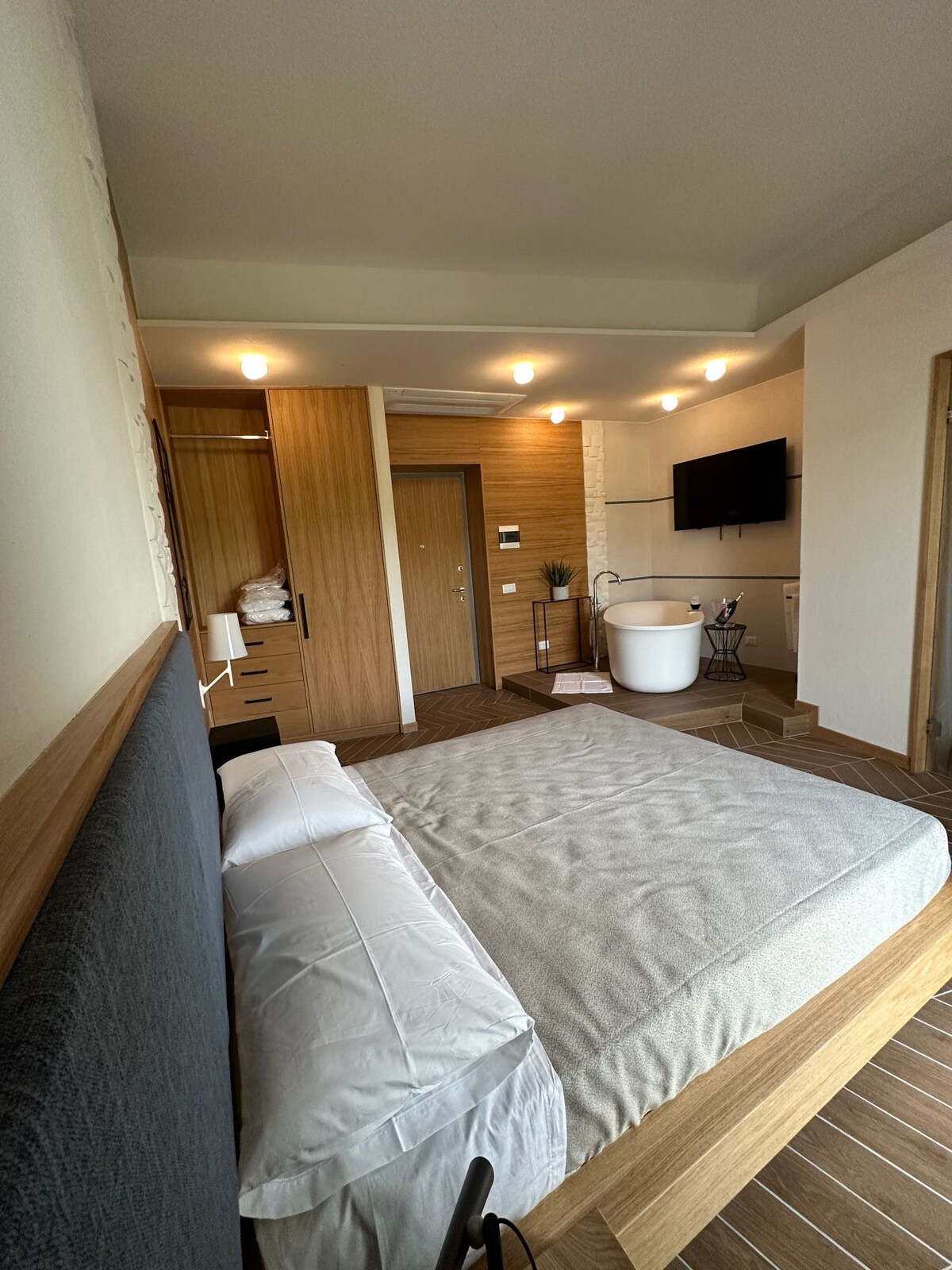 It is mainly characterized by the presence of a jacuzzi that is located inside, an environment heated not only by the bubbles of the hydromassage but also by a starry sky and a game of soft lights.