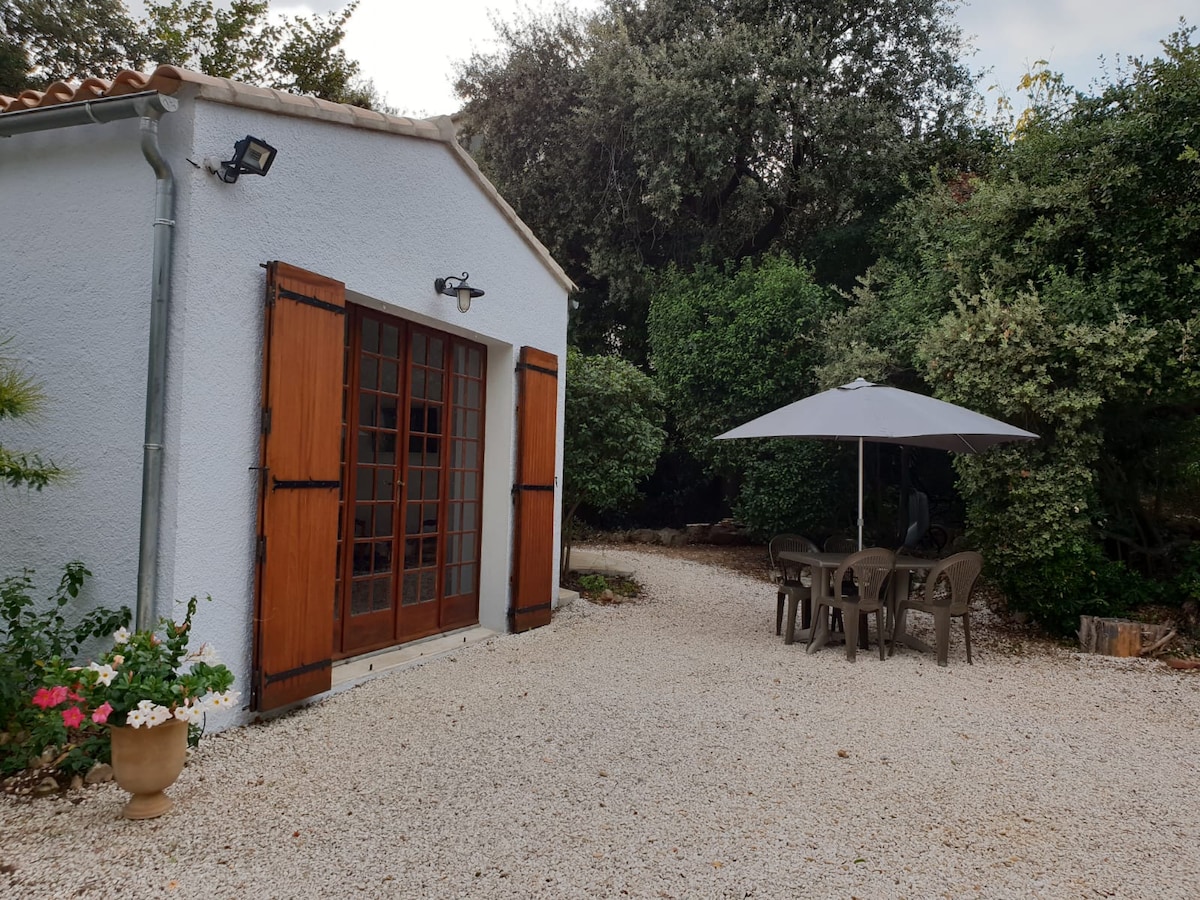 Accessible through a private door from the villa's garden, you will enjoy reversible air conditioning and many Hi-tech amenities (TV, Wi-Fi, etc.) in your cocoon. You will be just as comfortable in this room to work (office space) as to relax (sofa).