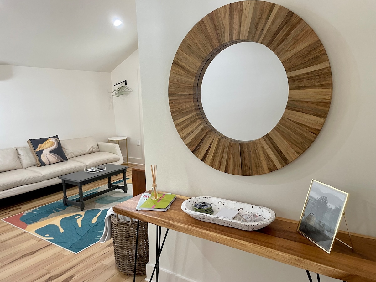 A modern style and freshly renovated studio ‘bungalow’ in the heart of Baton Rouge that features vaulted ceilings, Queen sleep number bed, in-ceiling speakers, kitchenette, covered patio to relax, and gorgeous views of the LSU lake just down the street. You can't beat this peaceful location, with the ability to walk to numerous restaurants, bars, grocery stores, and shops!