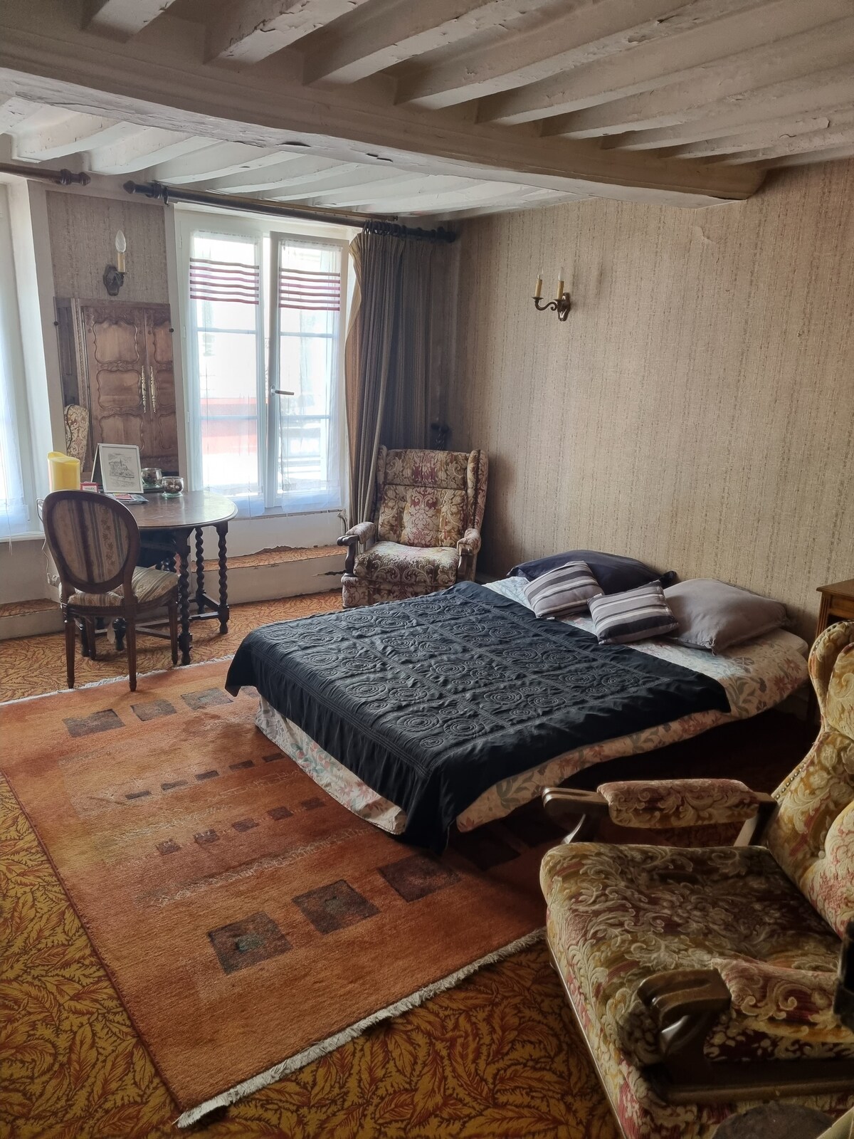 Bedroom with double bed, toilet and private bathroom. Located in the heart of Bayeux city center.