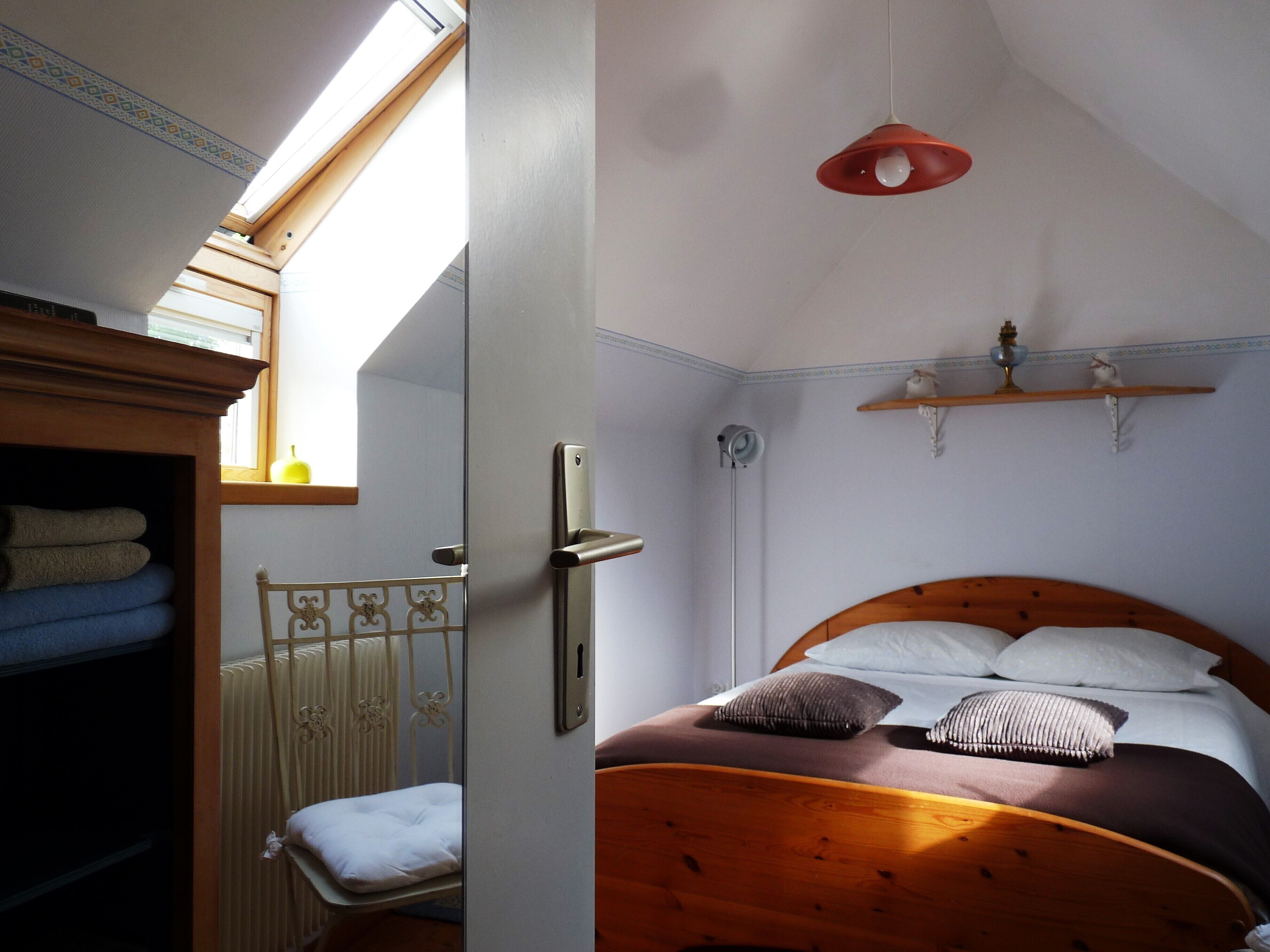 In this old farmhouse (1850), you’ll find a tastefully decorated bedroom, and a living area including a fully equipped kitchen. The bathroom is both modern and warm. A convertible sofa in the living room can sleep up to two more people.