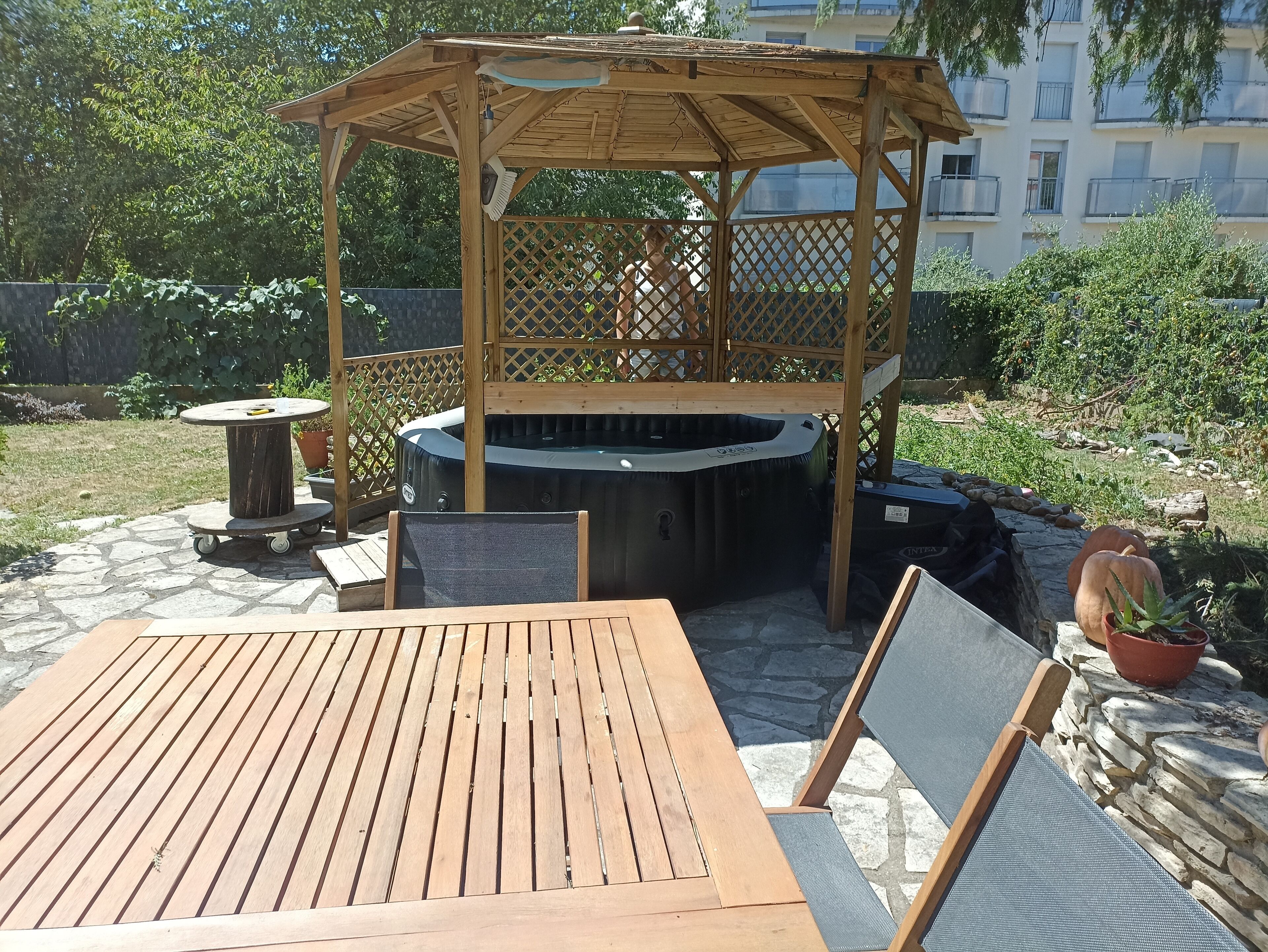 You can benefit from a private relaxation area accessible from the terrace of the cabin. You will find a spa, a sauna, a shower and a bench. This relaxation area is optional and can be booked directly either in advance or upon arrival.
