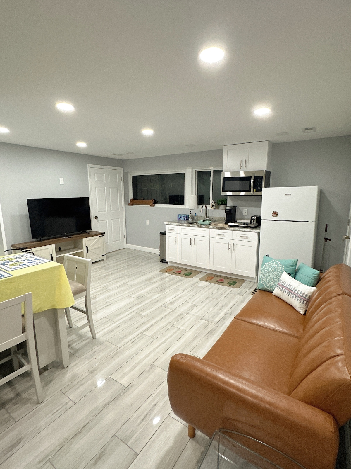 Welcome to this beautifully updated and spacious lower-level studio, perfect for a comfortable and relaxing stay. Recently renovated with a modern touch, the studio features brand-new flooring, updated lighting, and contemporary fixtures throughout.