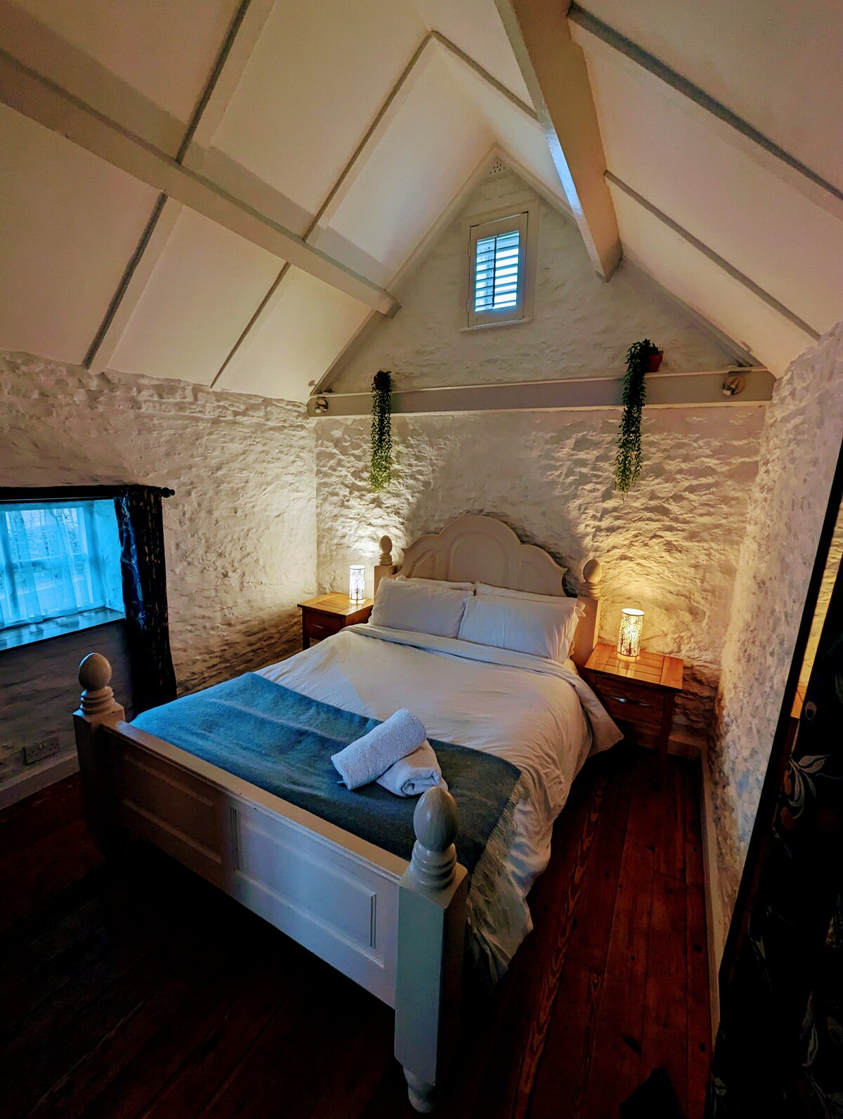 The entire dovecote will be yours for the duration of your stay, and includes an upstairs double bed, downstairs full bathroom with shower and copper bath, internal staircase, wifi, and TV. Fridge, complimentary tea, and coffee.
