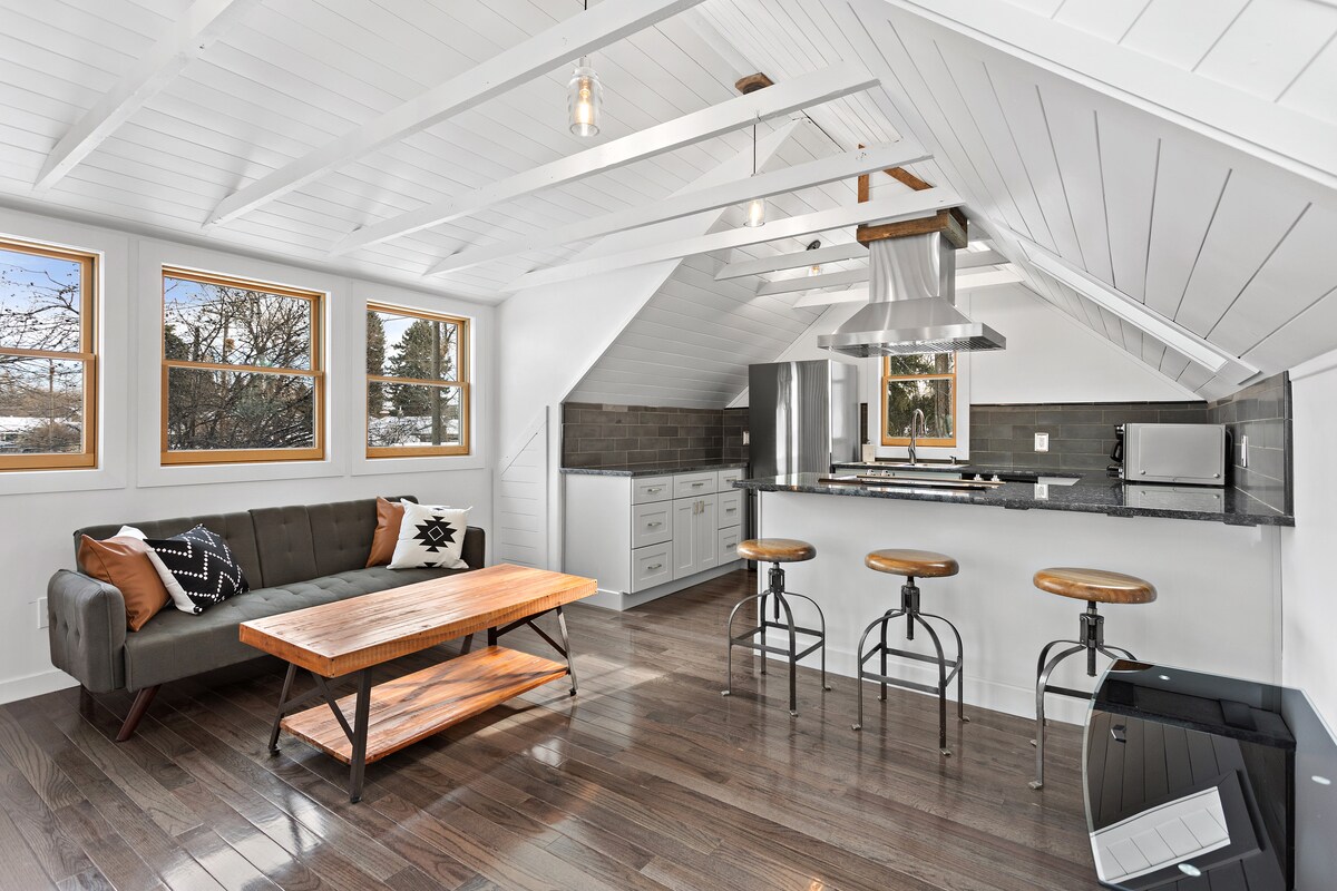 Welcome to our charming, centrally located Tiny Home, just minutes from downtown Billings, both hospitals, and the airport. This modern space features high ceilings, large windows that fill the home with natural light, and a queen-size bed that promises a restful night’s sleep. Enjoy the convenience of a fridge, oven/stove, and a new full-size washer and dryer. With stunning tile work and heated bathroom floors, we’ve created a space where you can truly relax and feel at home.