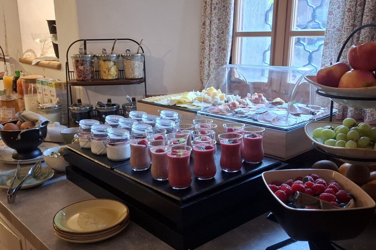 Please, note that our room-service type breakfast is optional and can be ordered on request at 12€ per person. Buffet breakfast is possible at the nearby pension.