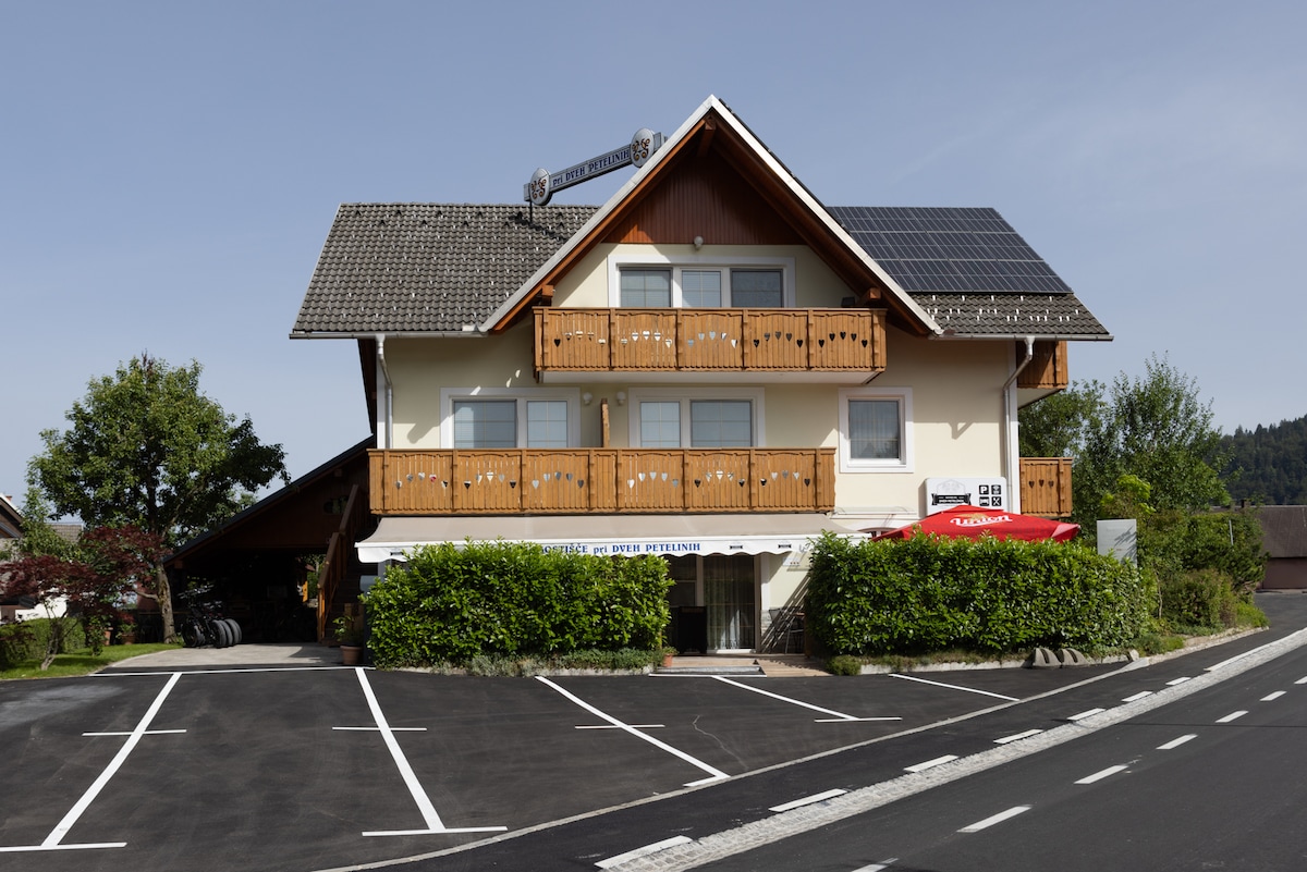 Our accommodation Gostišče Pri Dveh Petelineh, with more than 35 years of tradition, offers warmth and homeliness. Ecologically aware, with our own solar power plant, we ensure energy self-sufficiency. All accommodations are air-conditioned for your comfort.