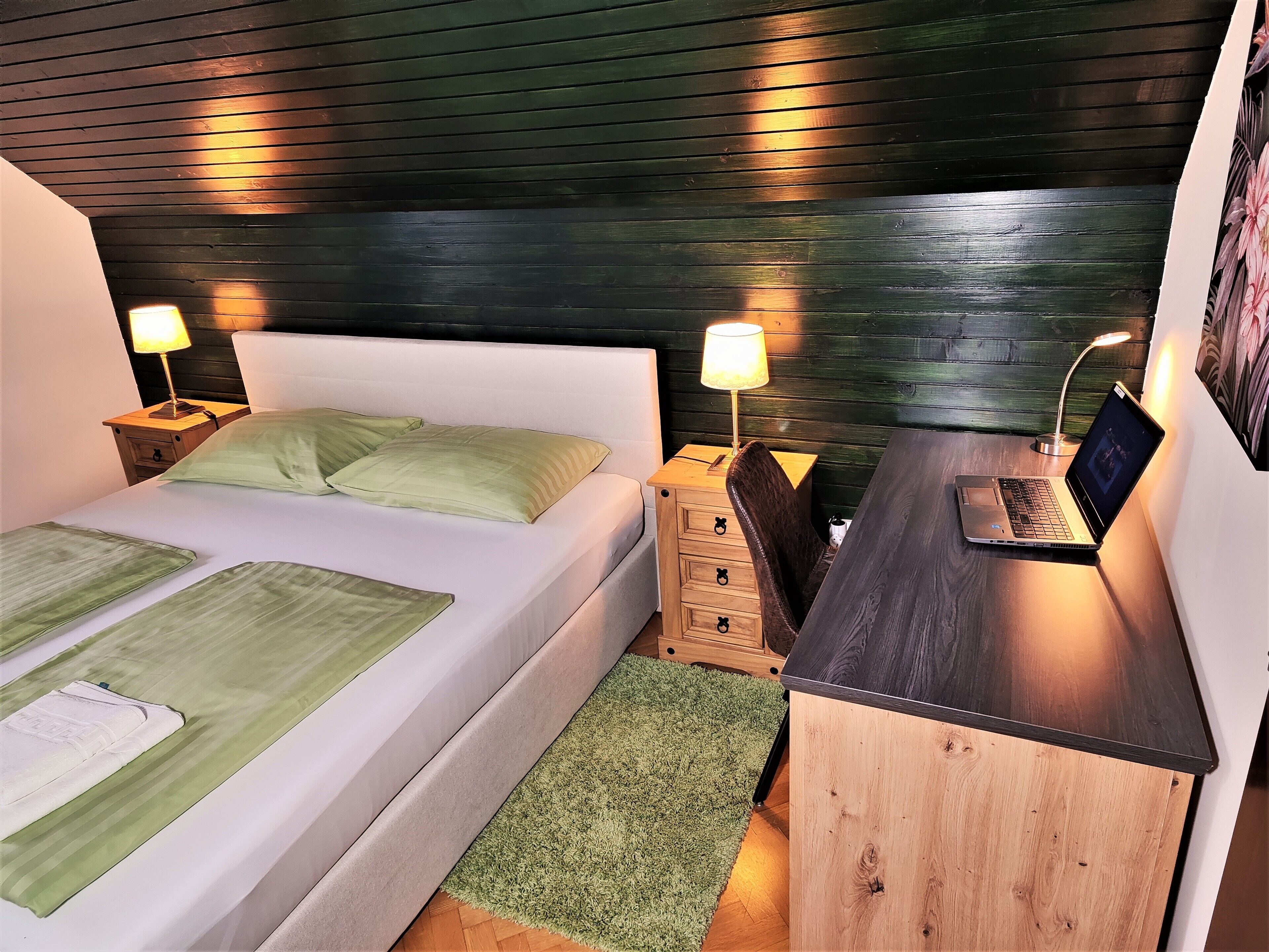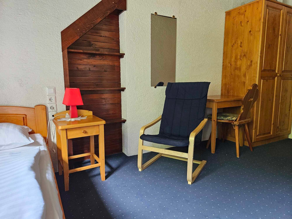 Stay in this cozy and stylish double room with a private balcony, perfect for couples or solo travelers seeking comfort and calm near Lake Bled. Enjoy free parking, daily breakfast, Wi-Fi, and peaceful surroundings. Designed with care to offer relaxation, privacy, and easy access to Bled’s natural beauty.