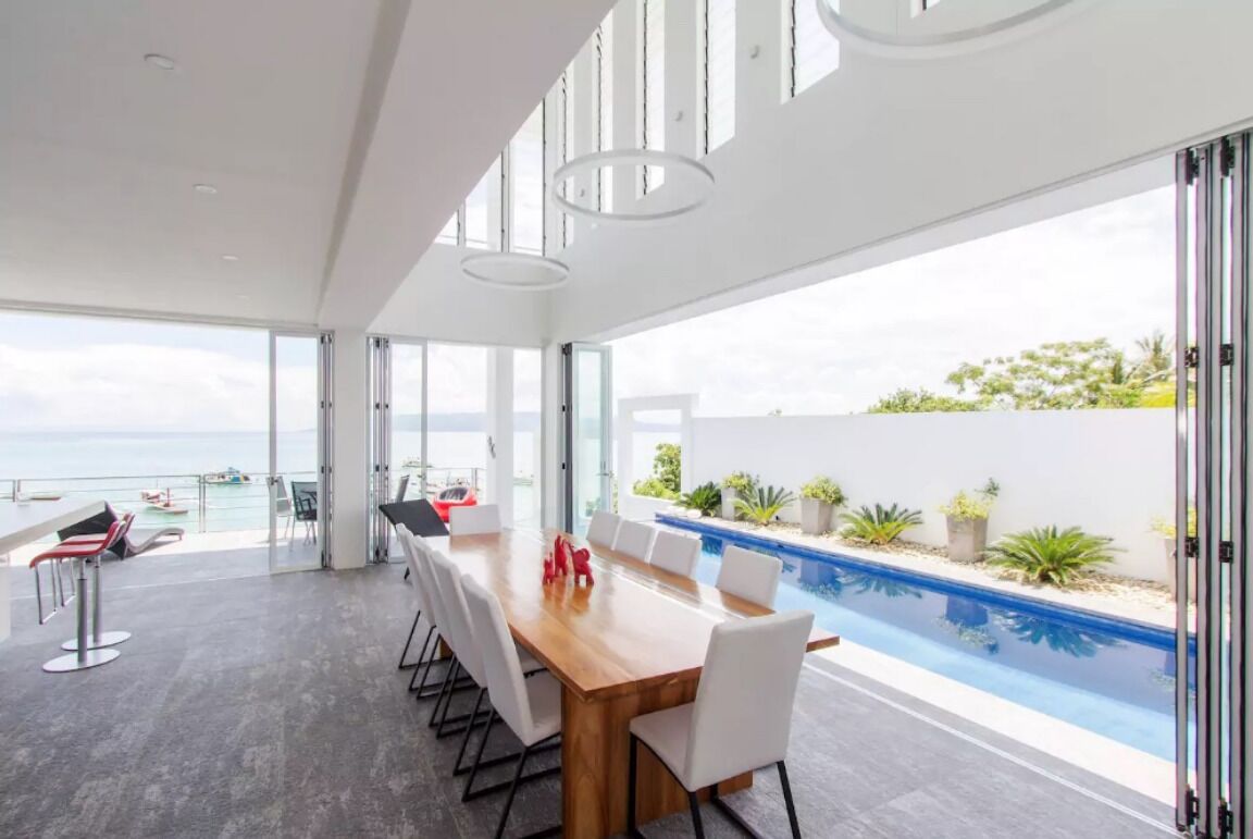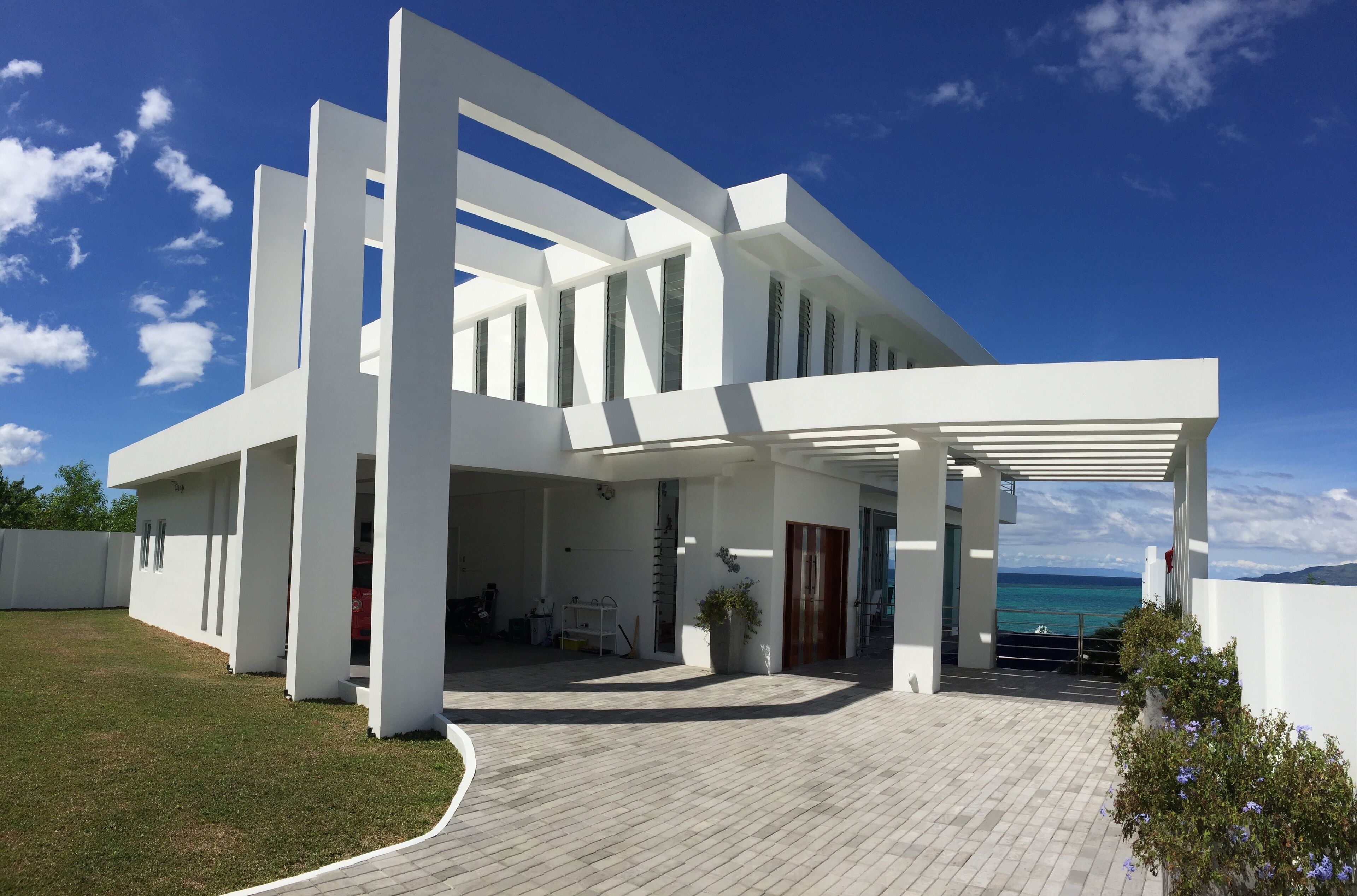Our ultra modern minimalist home is set on a cliff overlooking a small beach and the beautiful blue waters towards Bohol and Cebu Islands. Your modern air conditioned bedroom is set off the rear garden, has its own private access and private bathroom with hot shower. Guests have access to the lap pool with infinity edge, terrace and lounge. Fiona and David also live in the house and offer 2 rooms for guests so the house is a refreshing alternative to a crowded resort.