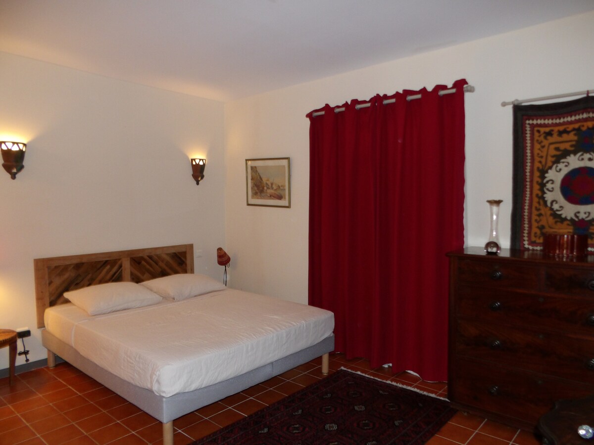 Rental of a room of 25 m2 for 2 people with air conditioning, shower, toilet, TV, private terrace, swimming pool to share, parking, summer kitchen near the pool for the tenants of the residence, (microwave, plancha, induction plate, toaster), breakfast on request (extra charge at 12.50 euros per person per day), linens, towels, coffee maker, kettle and mini bar available, hair dryer, laundry line.