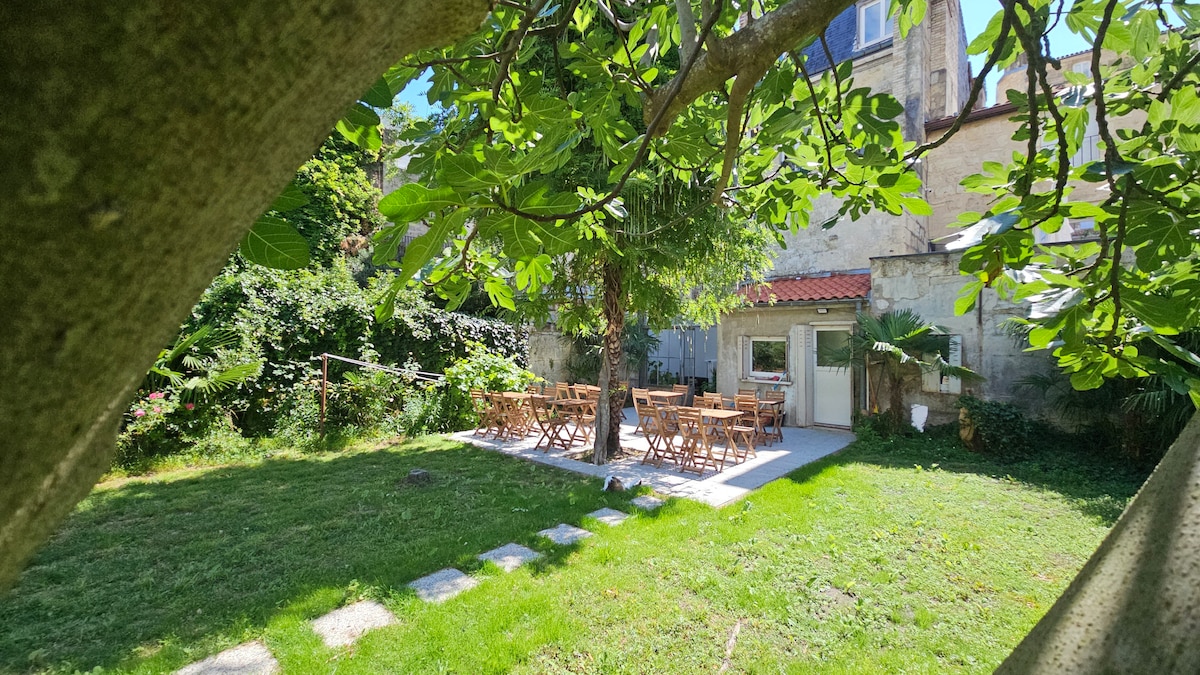 Welcome to the Garden House. Located in downtown Bordeaux, right next to the Jardin Public, 5 minutes from the river. 100 meters from tram station which take you directly to the airport or train station. This lovely three stories house is spacious with beautiful classic French interior paneling. It's including 5 guest-rooms with 3 shared bathrooms, with a glass veranda and a huge garden. Enjoy easy access to popular shops and restaurants from this charming place to stay.