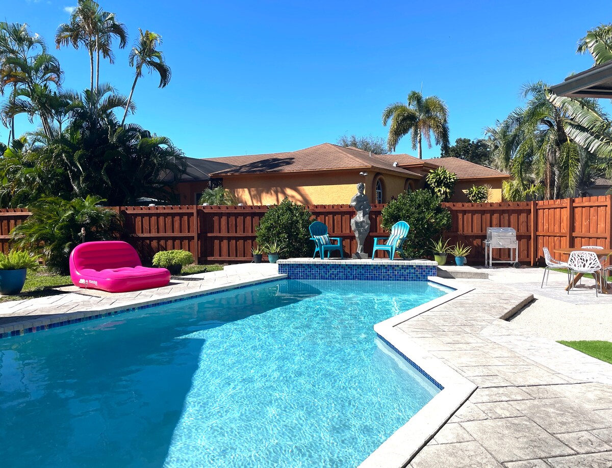 Koolhaus of Boynton is a small Guesthouse (roughly 270-300 square feet) that is separate from Host’s main house. It has a private entrance with frosted impact-glass French doors and a digital deadbolt lock. You’ll have the entire Guesthouse to yourself as well as access to the private pool, all patio areas, and the large yard enclosed with a 6-foot tall privacy fence, barbecue grill, and outdoor dining area. The Host lives in the property’s main house and all outdoor areas are shared with the Host.