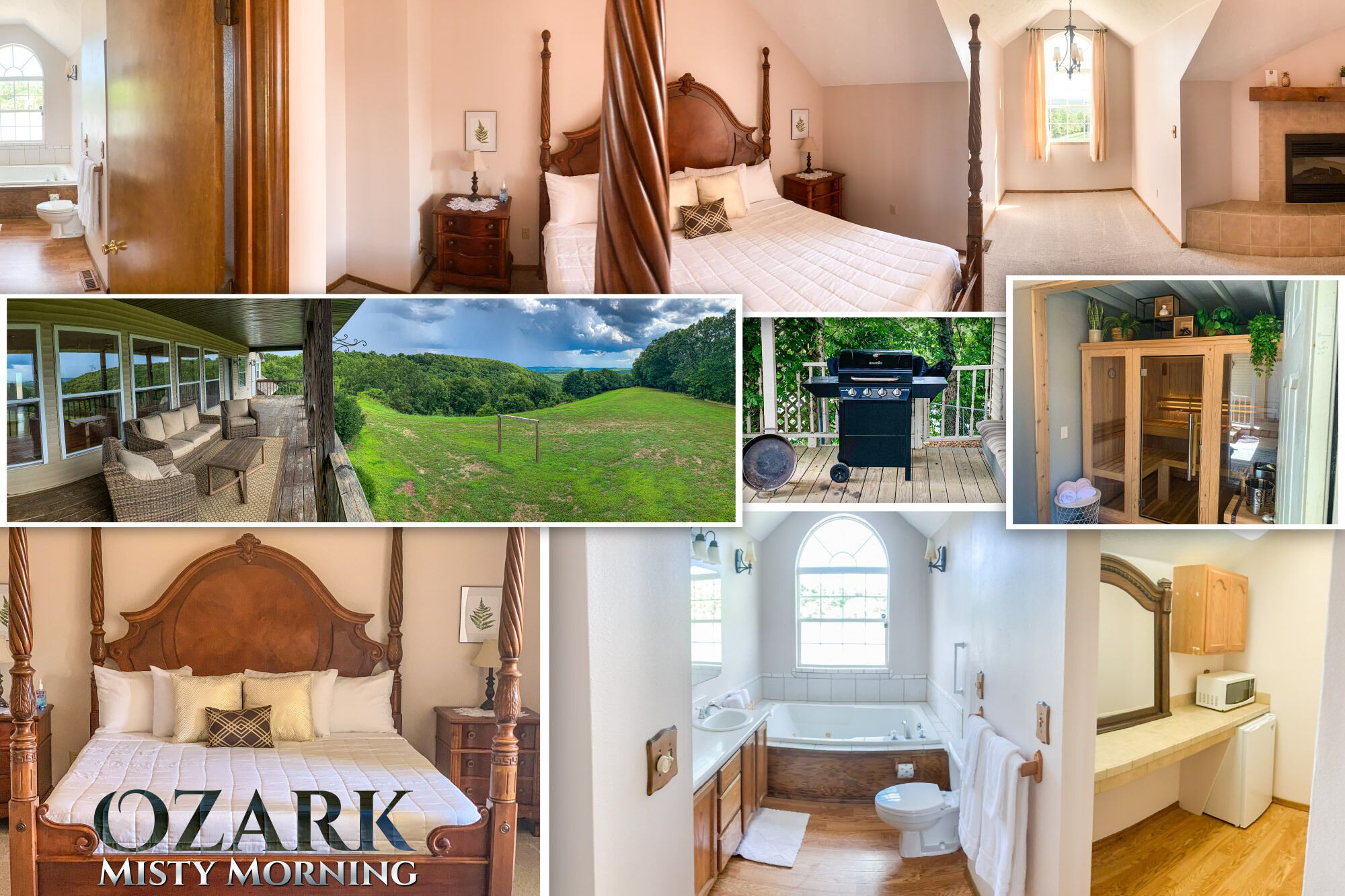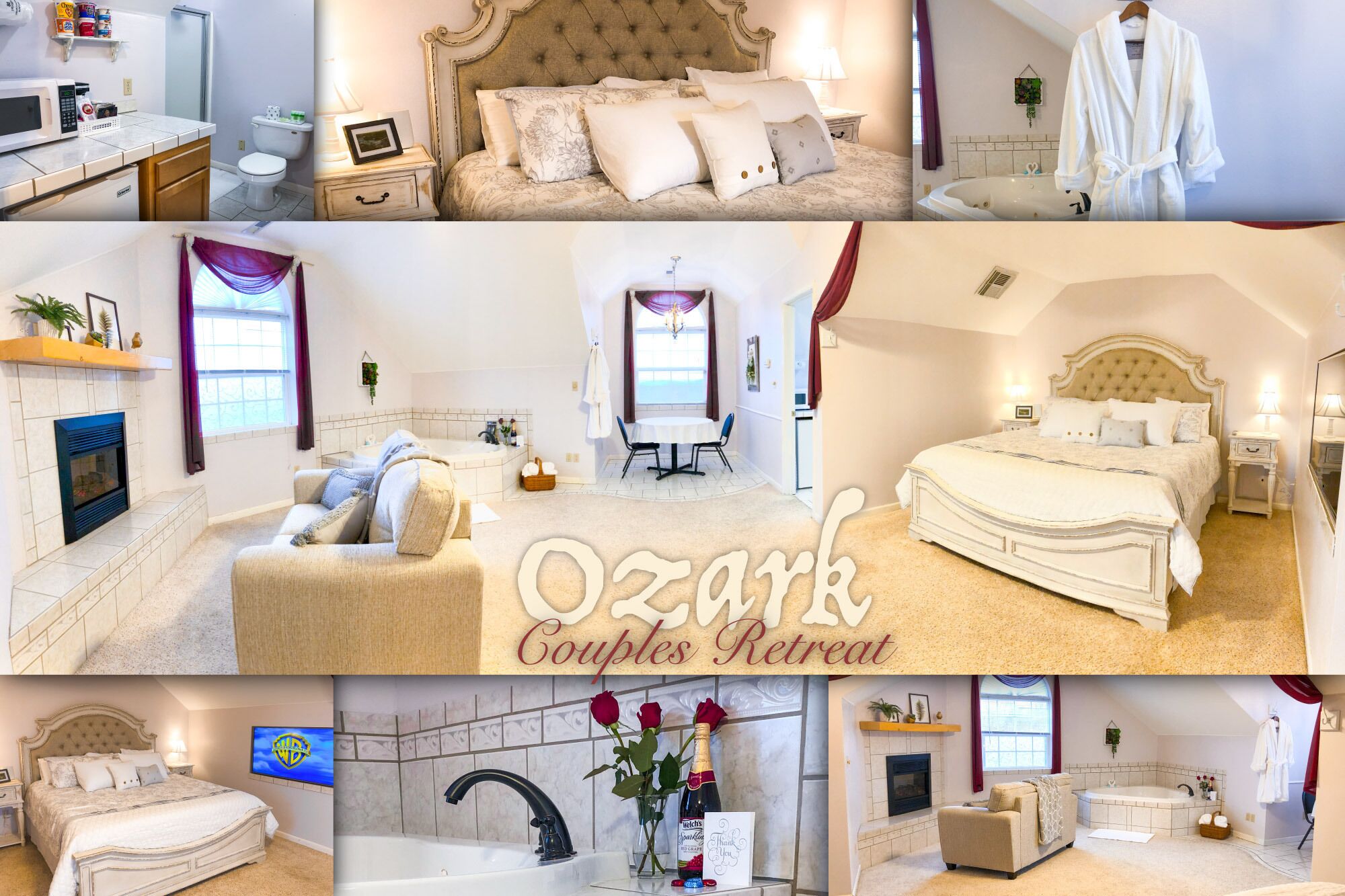 Just minutes from Branson, this beautiful Jacuzzi room is perfect for couples enjoying a relaxing vacation, honeymoon, or a romantic getaway overlooking the Ozark mountain range and is surrounded by hundreds of magnificent acres filled with deer, hummingbirds, and flowering plants. Complimentary breakfast items included within the suite!
