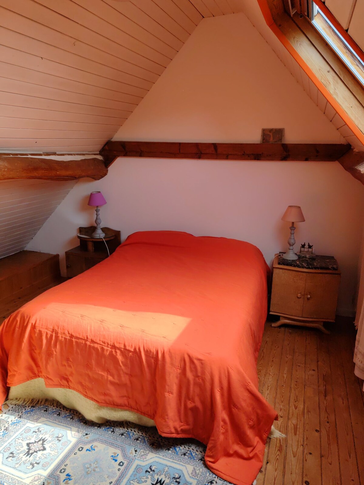 Large room on the 1st floor of a house 150 m from the sea. On the same floor, bathroom, toilet and another bedroom. Shops nearby. Possibility to enjoy the south-facing terrace. 5 km from Ouistreham, 15 km from Caen and close to the landing beaches.