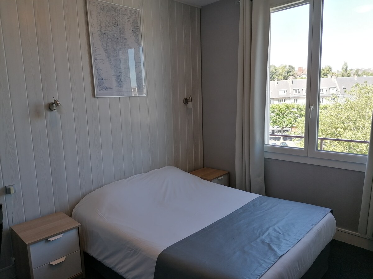 Hotel de l 'Univers is located near the marina, in the city center, surrounded by restaurants, the hotel consists of 21 rooms including 17 with a view of the port. The Château Ducal is 300 m away, the Saint Pierre church and the tourist office are 200 m away, the abbey of the ladies at 500 m. The tram and bus stations are 100 m away, the train station is a 10-minute walk. To park your vehicle, the hotel is surrounded by 5 public parking lots, one just across the street from Place Courtonne.