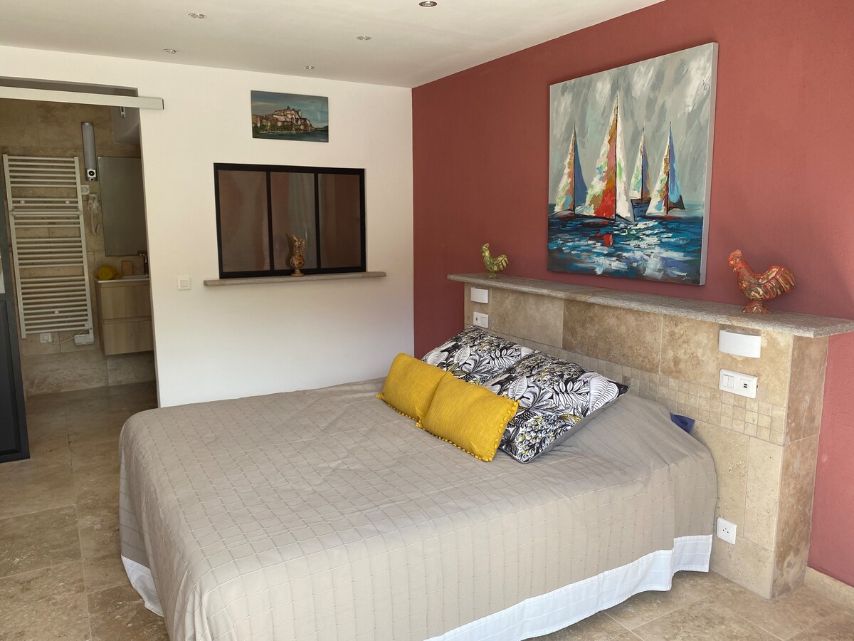 You'll love the stylish decor of this ground floor room with direct access to the pool. The pool and sunbathing areas are accessible in the afternoon between 2 p.m. and 7 p.m. Bedroom with a private bathroom and toilet ( bathtub) , a double bed in 160 cm and air-conditioned . There is also a corner offering kettle and coffee machine with tea,infusions,coffee available.
