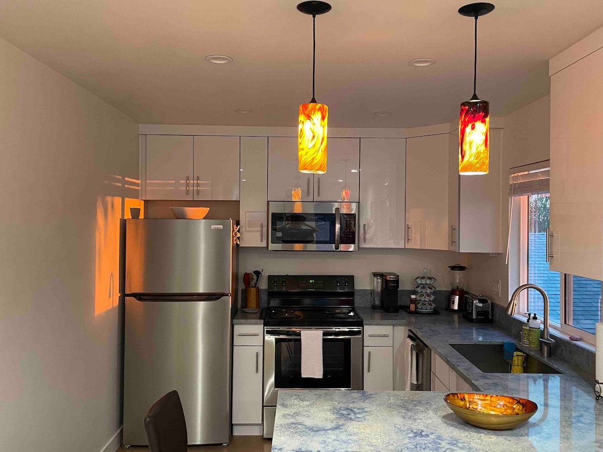 We have traveled frequently ourselves and enjoy staying at places with interesting and unique architecture and enjoy meeting new people. We also prefer our accommodations to be very clean with nice, comfy beds. A small kitchen with basic cooking amenities allows you to prepare simple meals if you wish. We have also provided you with a coffee maker, microwave, 2-burner electric cooktop, toaster, blender, and small portable oven.