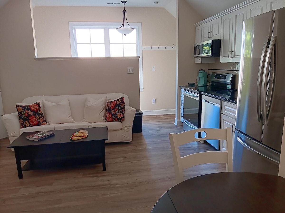 This beautiful one-bedroom apartment is centrally-located within the Triangle within a 30-minute drive to Raleigh, Durham, and Chapel Hill. It is two blocks from the $65M Downtown Cary Park that has lighted elevated walkways, food trucks, and a social district. It is walking distance to dozens of breweries and restaurants and a short drive to NC State and WakeMed Soccer Park. The apartment has a full kitchen and separate desk. There is a separate entrance and free parking.