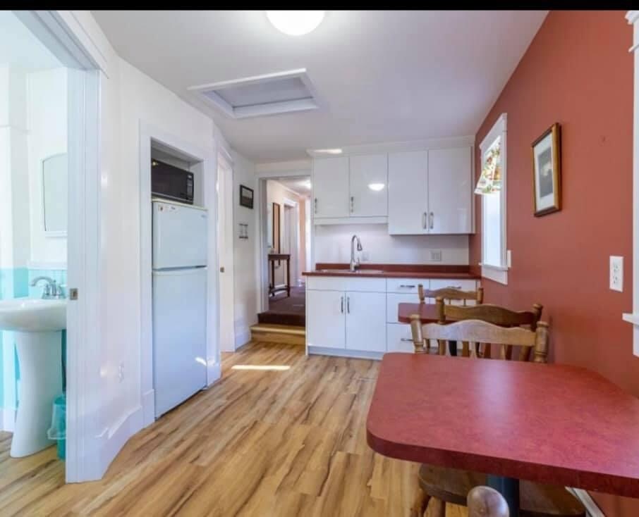 The cottage is a self contained guest house is quaint, rustic cute with a queen sized bed, full kitchen, table, chairs, and full bathroom. On location with our four room inn, this cottage has access to the 2.5 acre yard with volleyball, basketball and soccer nets. Located five minutes from Royalty Crossing Mall and close to grocery stores and shops in Charlottetown.