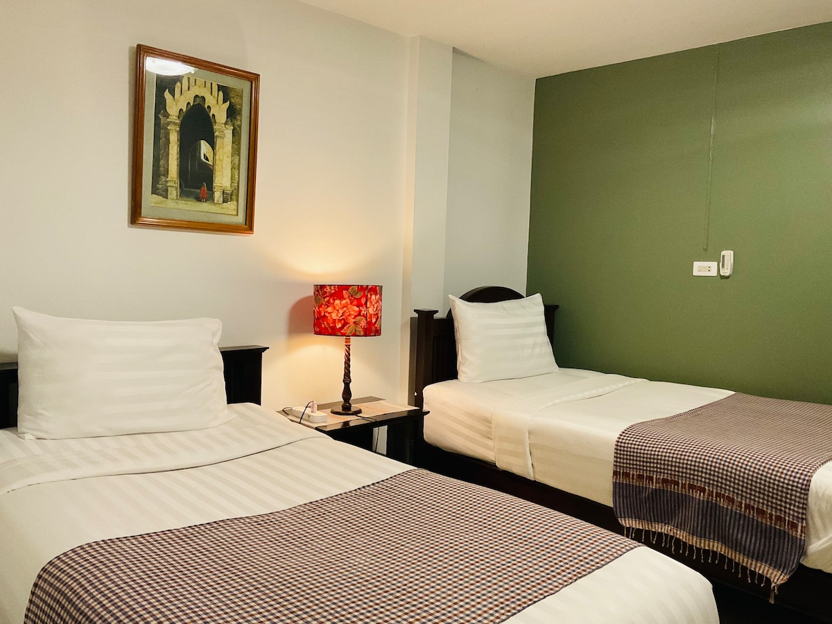 Small guesthouse. Quiet and conveniènt location in typical Thai home environment. Five rooms total, all with private baths and A/C. Three rooms have double beds, and two have twin beds. Easy walk to old city center and Saturday night market.