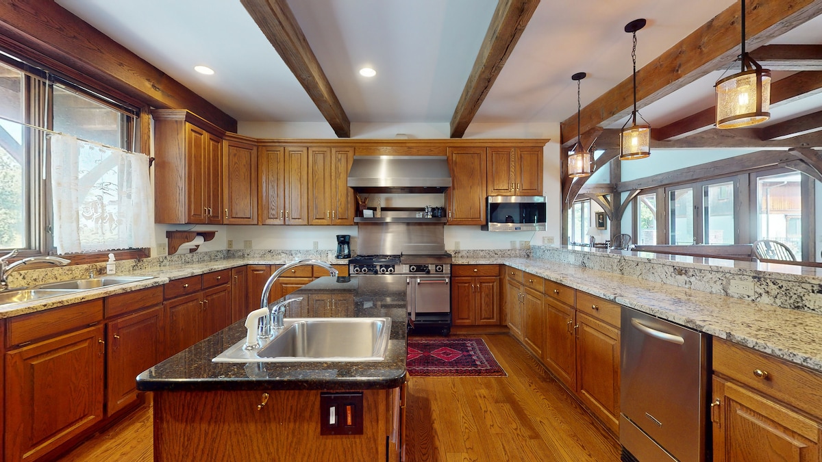 The uniquely designed kitchen area comes with numerous cooking appliances and spacious countertops is land outdoor patio. If you want to take a break from the Central City restaurants, then this is the place for you.