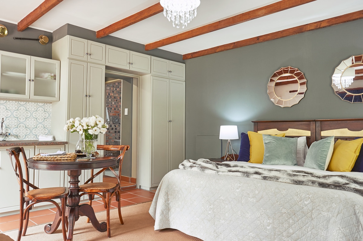 Room only - include, private bathroom with shower, Luxurious linen, towels, bathrobes, amenities, Kitchenette with Microwave, fridge, coffee station, Nespresso, dining and/or work space. Free parking, private patio and garden with views of mount Horeb.