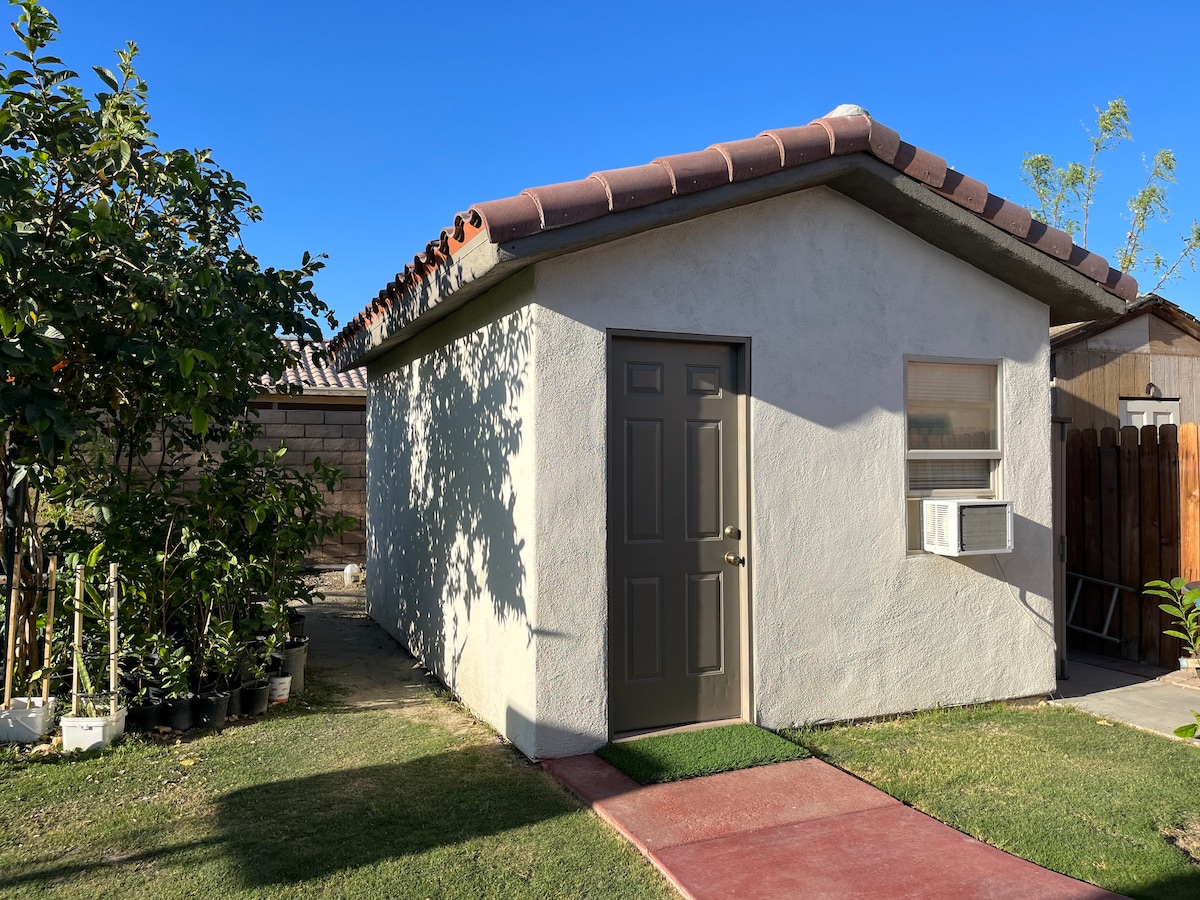 This casita is in our backyard and we are excited to share it for the first year ever! It is located 2.8 miles or 8 minutes away from the Indio Polo Grounds where the Coachella Music and Stagecoach Music Festivals are hosted. The casita consists of a bedroom, bathroom and a closet with amenities such as a mini fridge, coffee machine and twin air mattress available. Separate driveway available for guest parking. Outdoor patio area is shared with the main house.