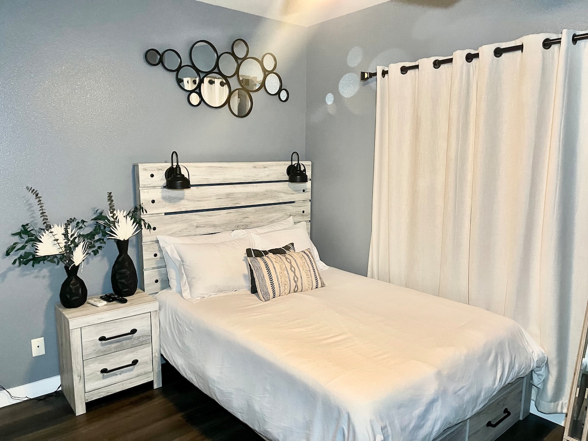 1 bedroom and 1 bathroom private room located in the home’s backyard. Fits up to 4 guests.