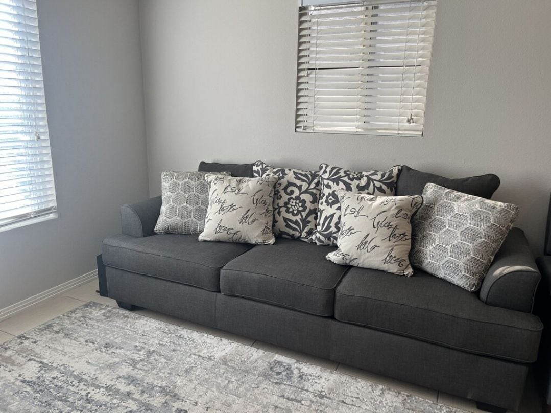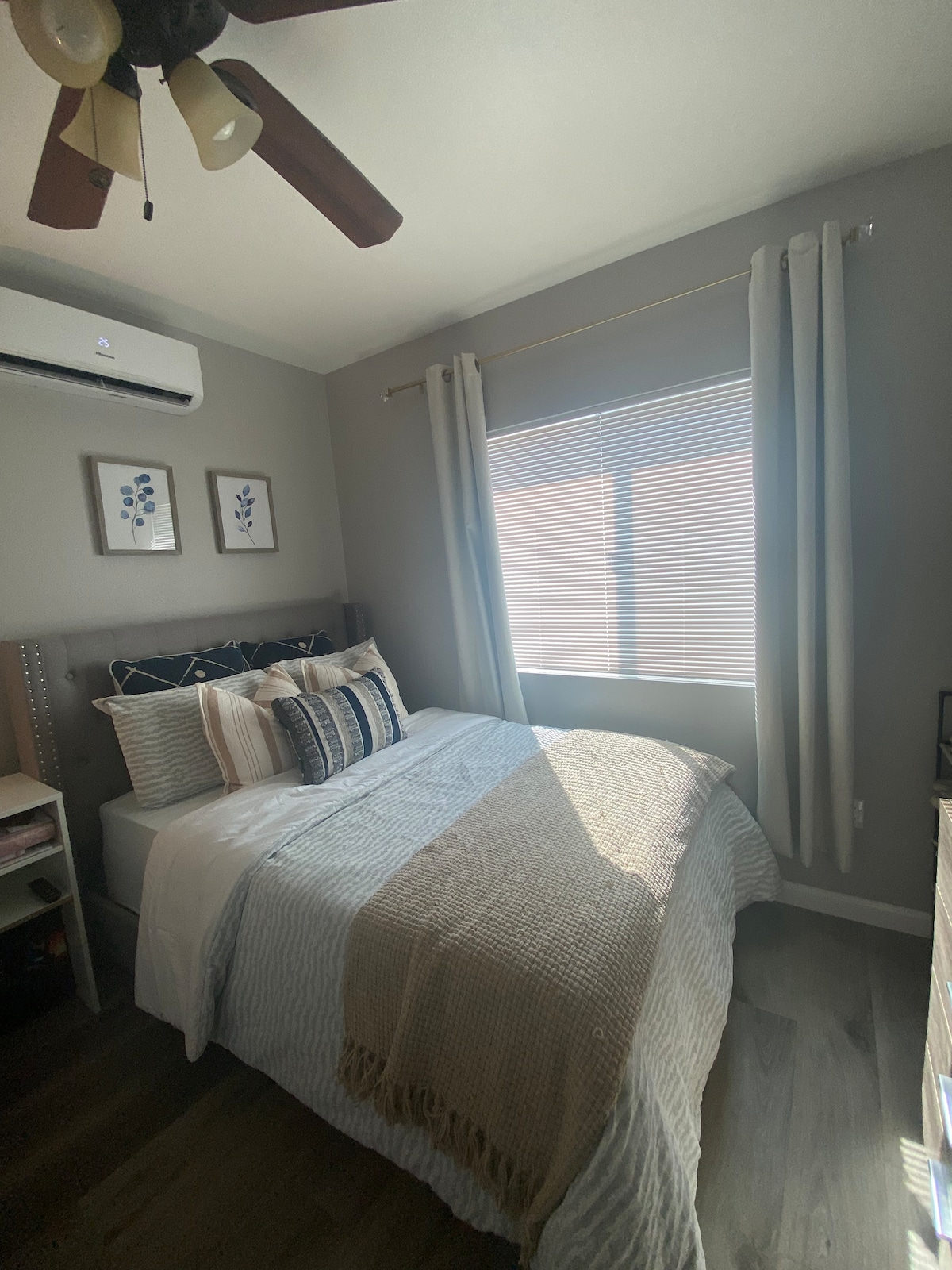 Guests have access to space shown in photos: living room, kitchen (no stove), bedroom , walk-in closet, and bathroom. There is no access to the backyard at this time.