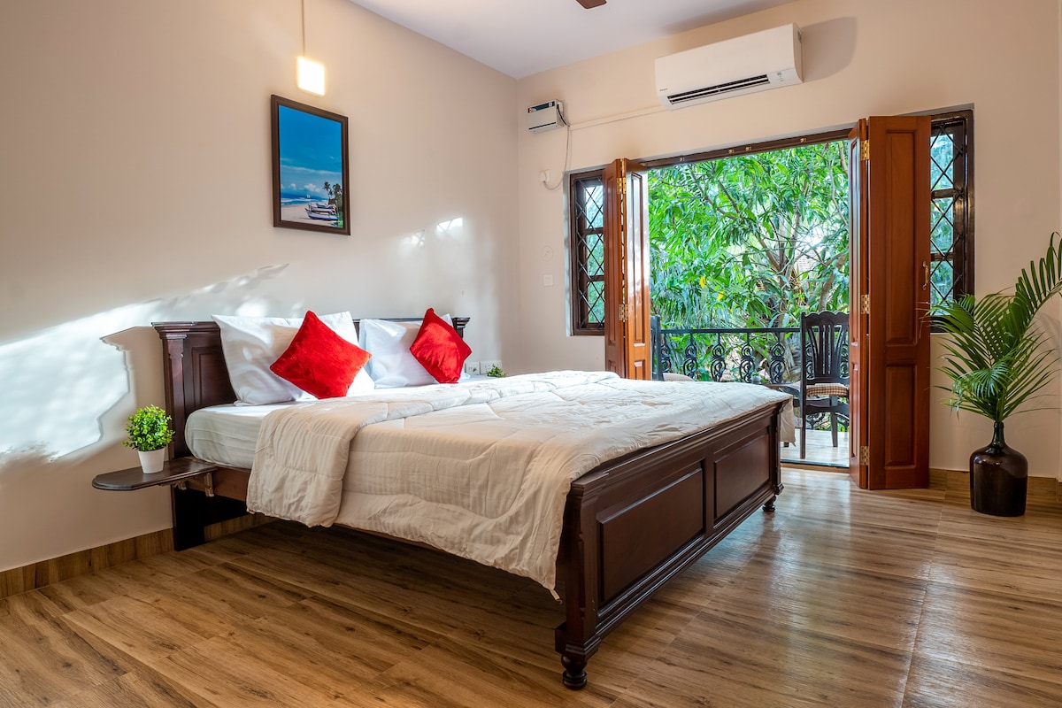 Villa Barbosa is a peaceful, calm and serene home away from home you can think of when you want to spend your holiday and take back some wonderful memories. The bedroom is modern, comfortable and has a king size bed with attached bathroom & balcony.