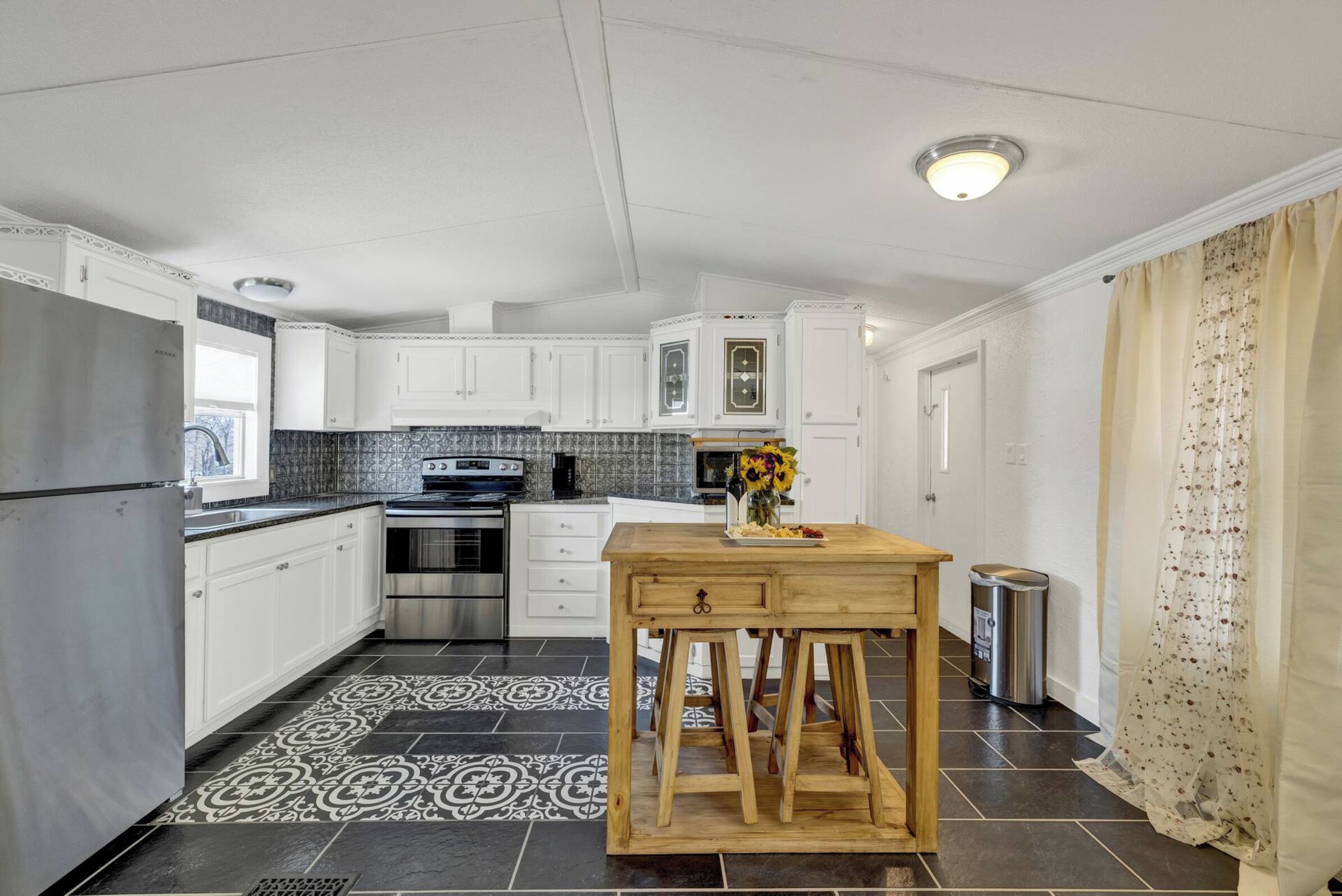 This cozy Texas inspired casita is the perfect location for all of your Hill Country adventures. You will be just steps away from Comfort's unique shops, local restaurants and wine bars. The kitchen is fully equipped with every necessity to create a wonderful meal along with a gas range with electric oven. The bedroom's king bed and 55" TV are perfect for relaxing after your day exploring the area. The bathroom has double vanities, walk in shower and separate water closet for added privacy.