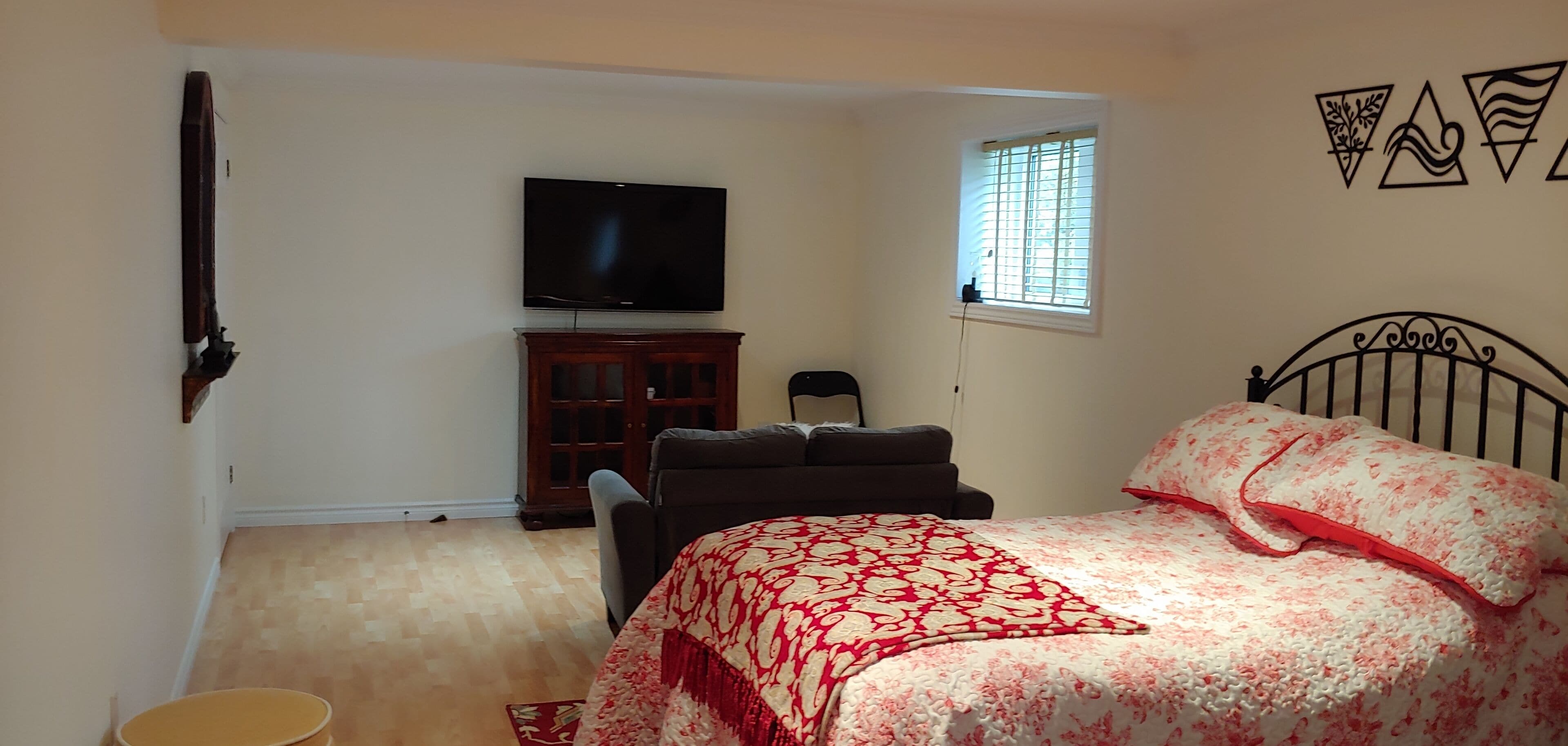 Spacious & Cozy Room, ideal for relaxing night, reading or watching tv shows, near the New Hospital, 450 HWY, restaurants, Grocery store, gas station, Hiking trails, Beautiful landscape, parking for 1 Vehicle, Internet.