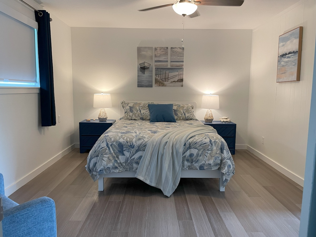 A comfortable cottage on a huge lot. Recent updates include new furniture, bedding, kitchen appliances, bathroom and wood floors, thanks to Harvey.