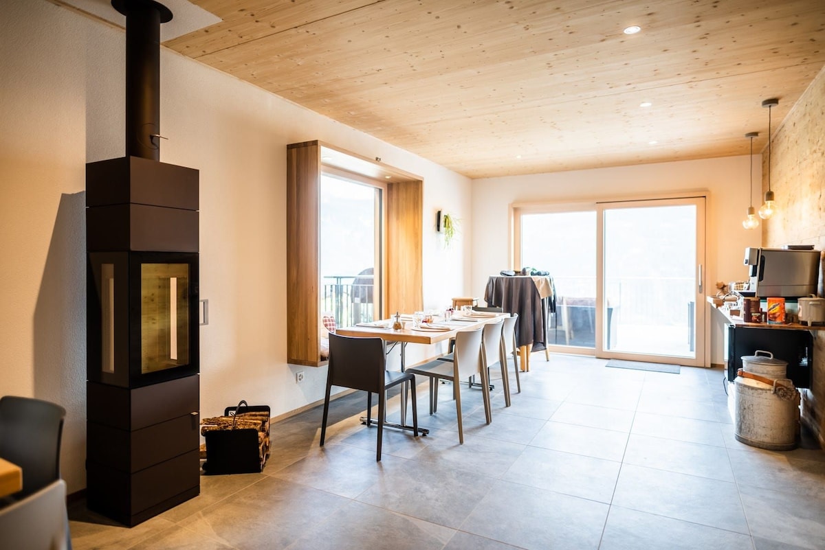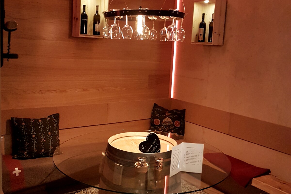 Your double room "La Vigne & Le Vin" is on the top floor of the chalet with elevator, terrace and private bathroom (with shower), UHD TV, Wifi, 33 m2, no smoking. Panoramic view from your hammock, spacious breakfast room, carnotzet and more.