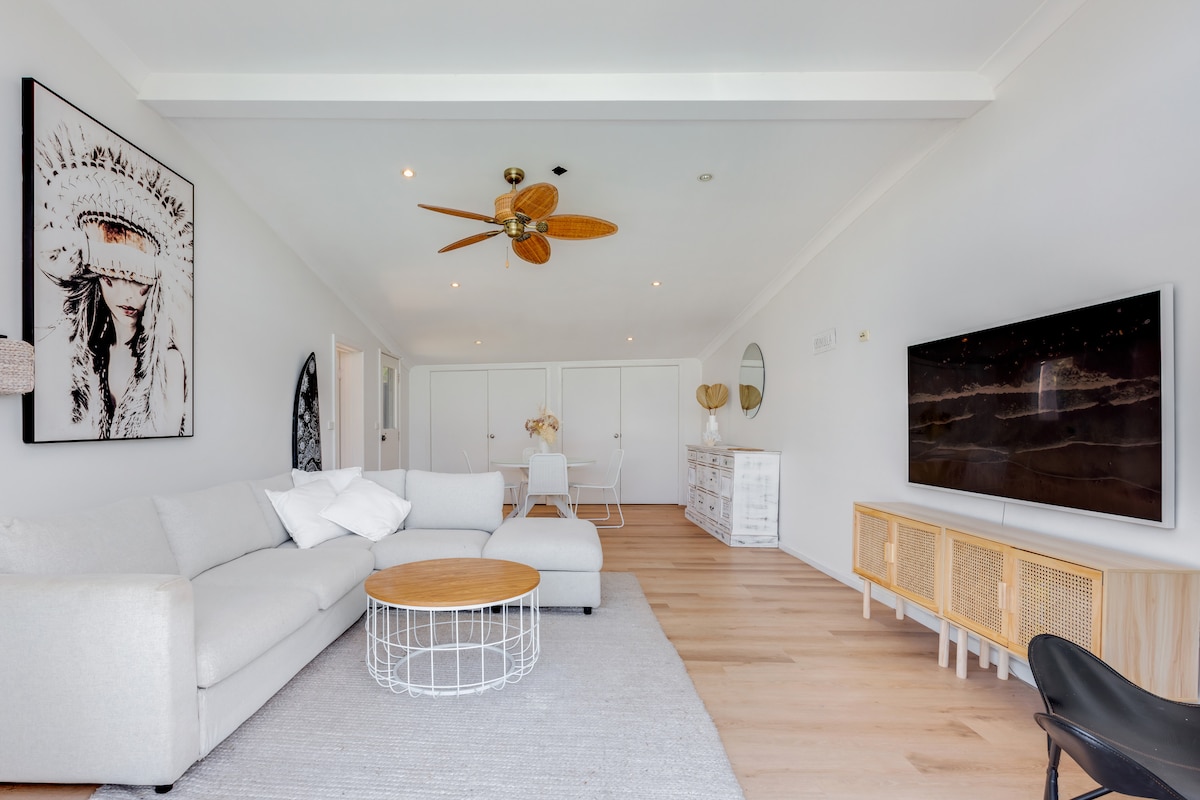 Sunlit filled beach house - 1 bedroom QN bed with king single, 1 bathroom & lounge room with fold out sofa. 1 driveway parking.