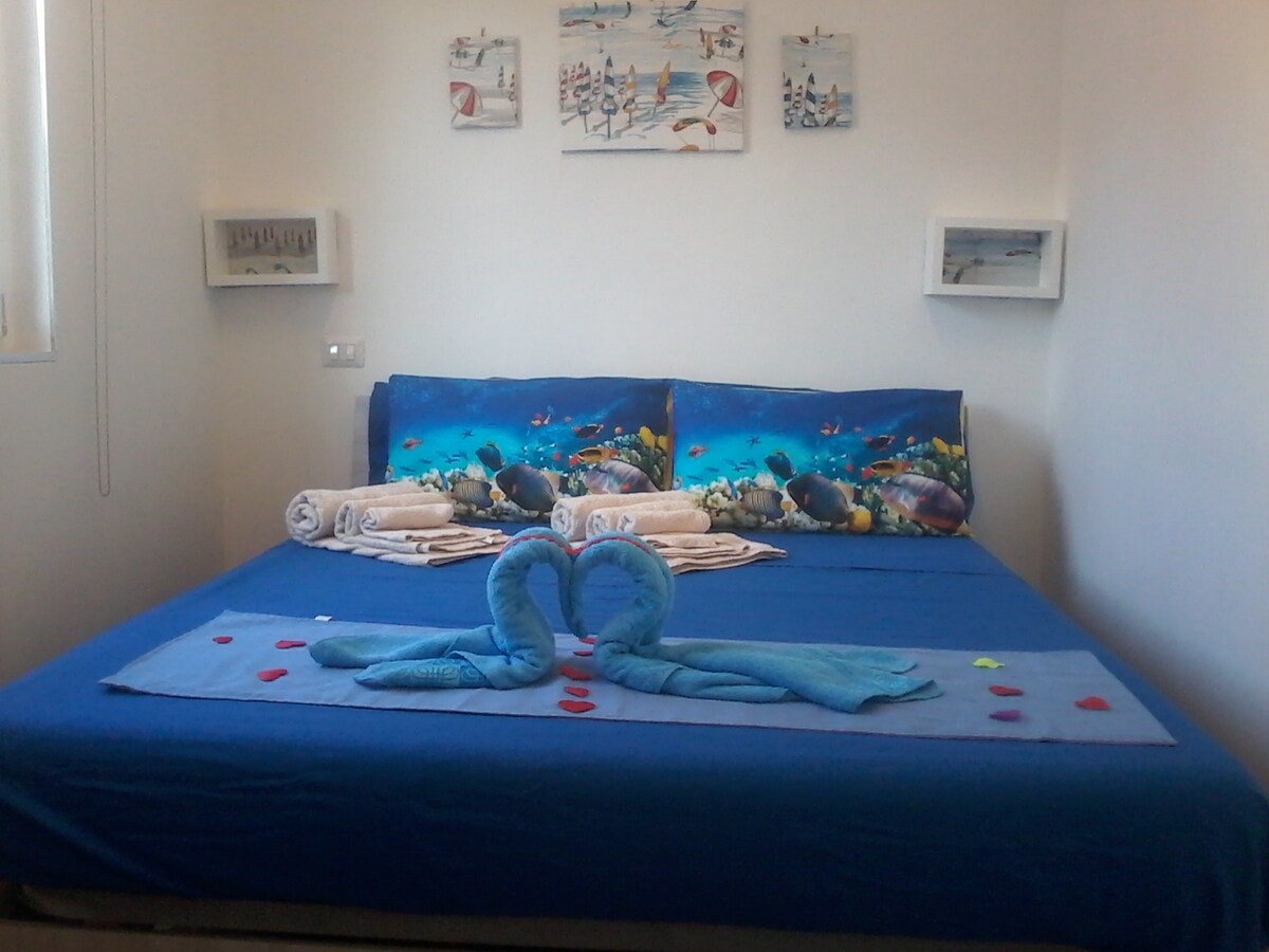 Con il suo colore blu intenso la camera Acquario fa sentire l’ospite abbracciato dal nostro mare.
