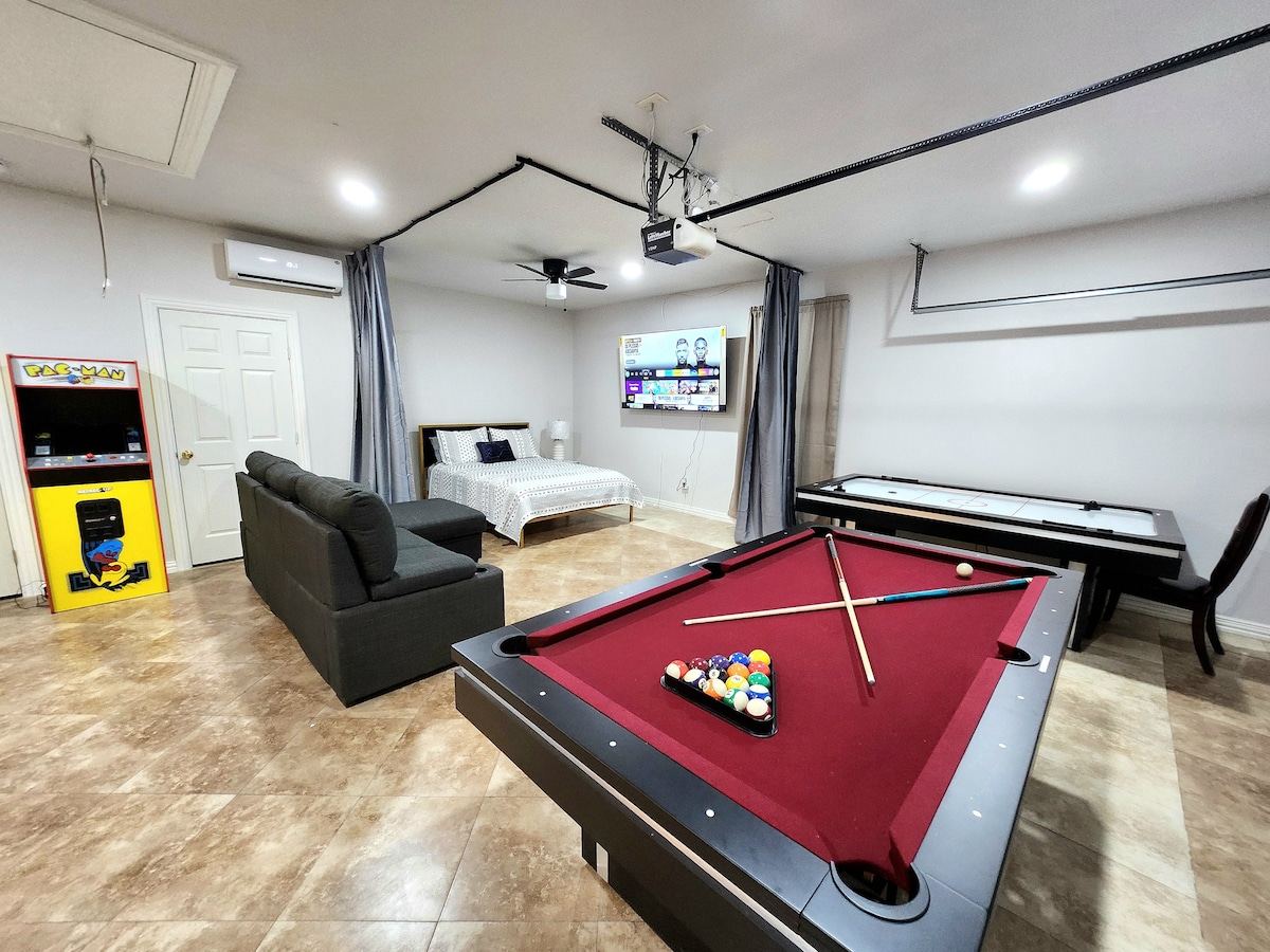 Welcome to our cozy guesthouse, located just 10 minutes from downtown! This tranquil retreat offers a perfect blend of entertainment and comfort. Enjoy a game of pool or air hockey, and unwind with a movie night on the 75-inch TV. The space is designed for relaxation, ensuring a peaceful and quiet stay. Ideal for both short visits and extended getaways, our guesthouse promises a memorable experience for all our guests.