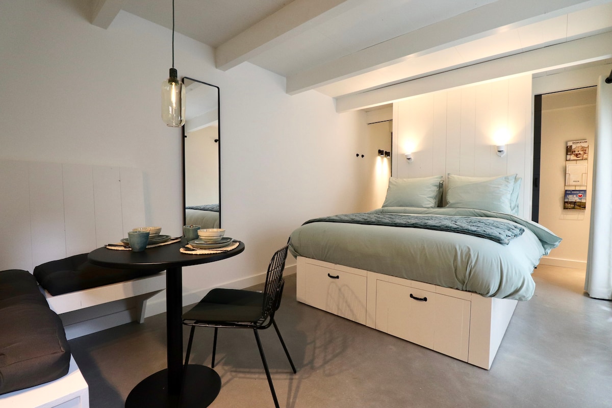 Crockery and a mini fridge are provided, but there is no possibility to cook or warm up a meal. We deliberately chose this because Dokkum has so much fun to offer and it is a shame if you can't use it. All restaurants are in walking distance