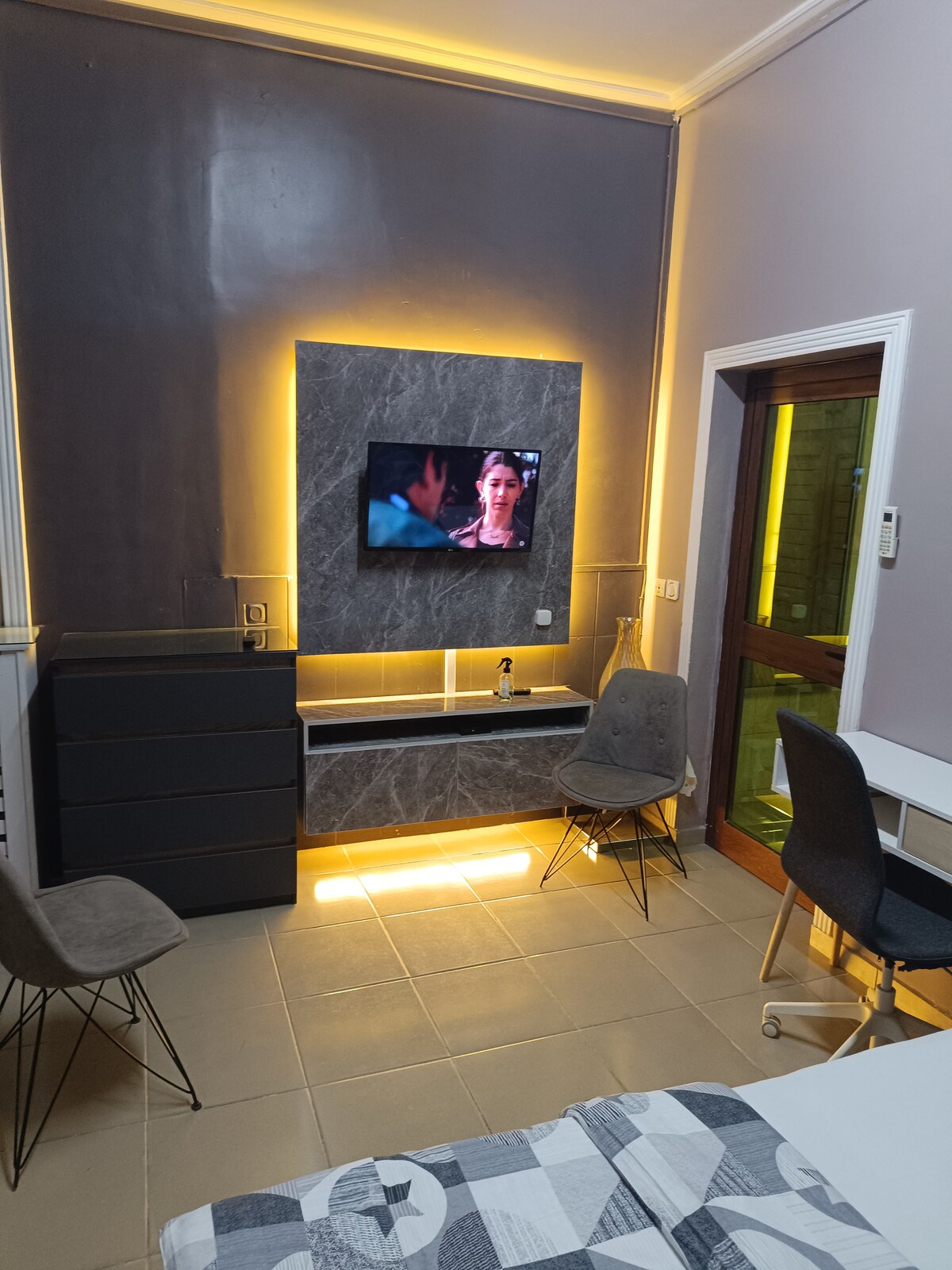 Relax on a king-size bed with orthopedic mattress, while enjoying Canal+ and air conditioning for optimal comfort. Kitchen area not shared. Super discount offer.
