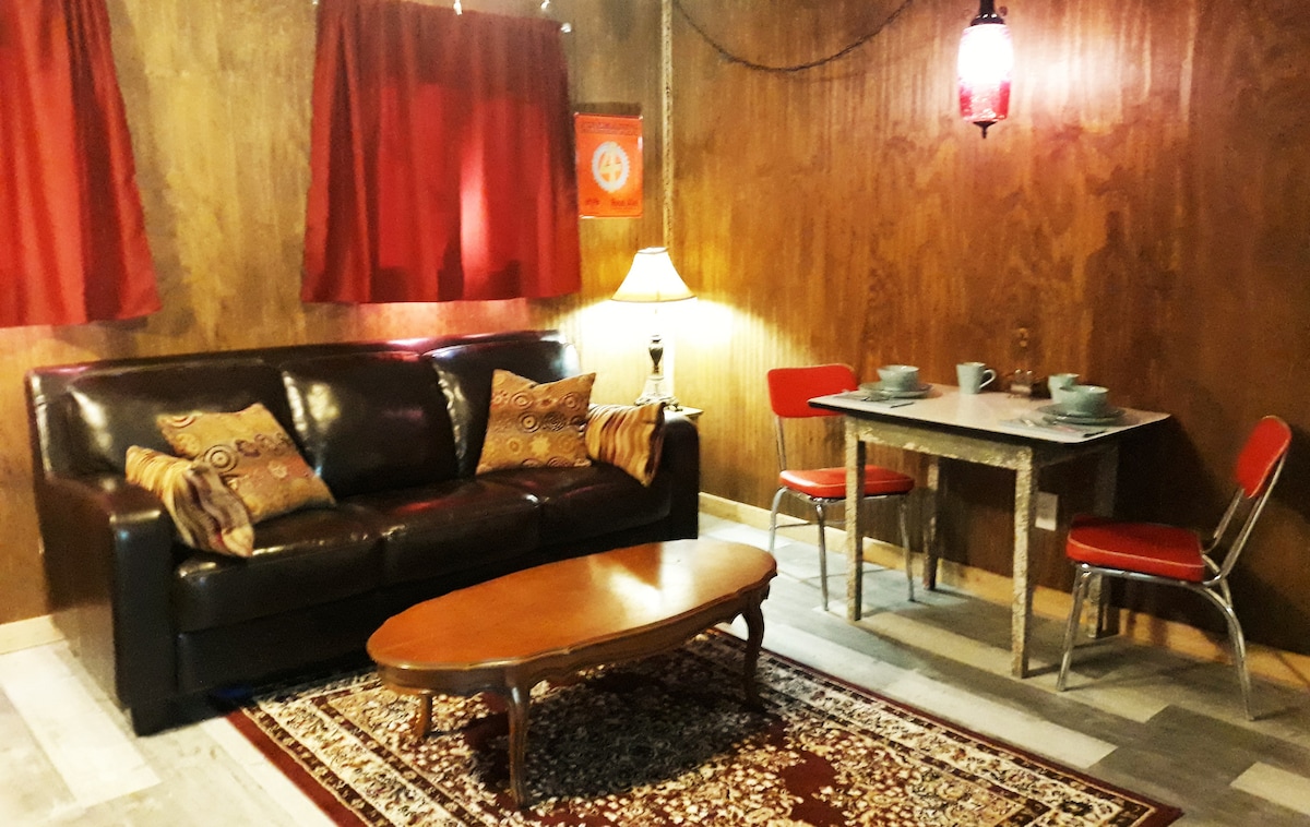 Casa Paradiso is a unique artist cabin hand-crafted by our very own tribe renaissance man! While on the road, the owner of the amazing cabin, rents it out to other local artists and Zen masters looking to find sanctuary in nature where they can create, meditate and enjoy nature. This cabin built completely from reclaimed lumber has a full-size bed, small fridge, AC, heater, fan, hand crafted desk, sitting chairs, coffee maker & essentials, hanging lights & window shades. Just off the porch is a beautiful private fenced space for grilling (charcoal not included) and watching sunsets at the patio table. There is also an outdoor sink and cold shower for those Wim-Hof-inspired rejuvenation showers! (There is also a warm option outdoor shower in our common area.)