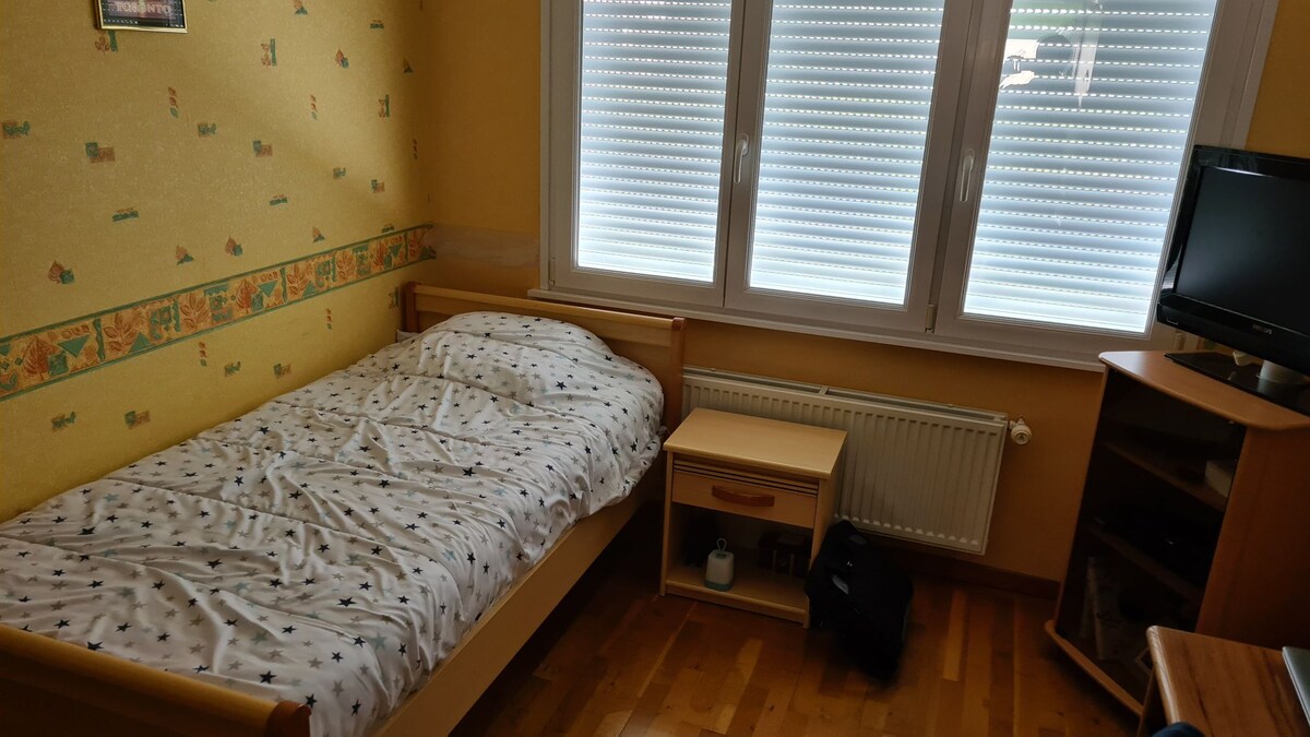 Hello, Very well-located location in quiet neighborhood. Equipped with wifi and free parking on the street or in the parking lot if available. As stated in the title, it does not affect the entire accommodation but a private room is locked. Bedroom 2 double beds in 140x190cm, 1 single folding bed.